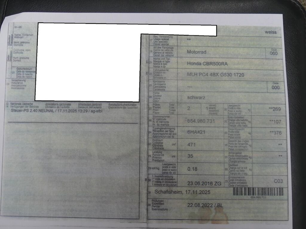 - TypCBR 500 RA ABS CBR 500 R