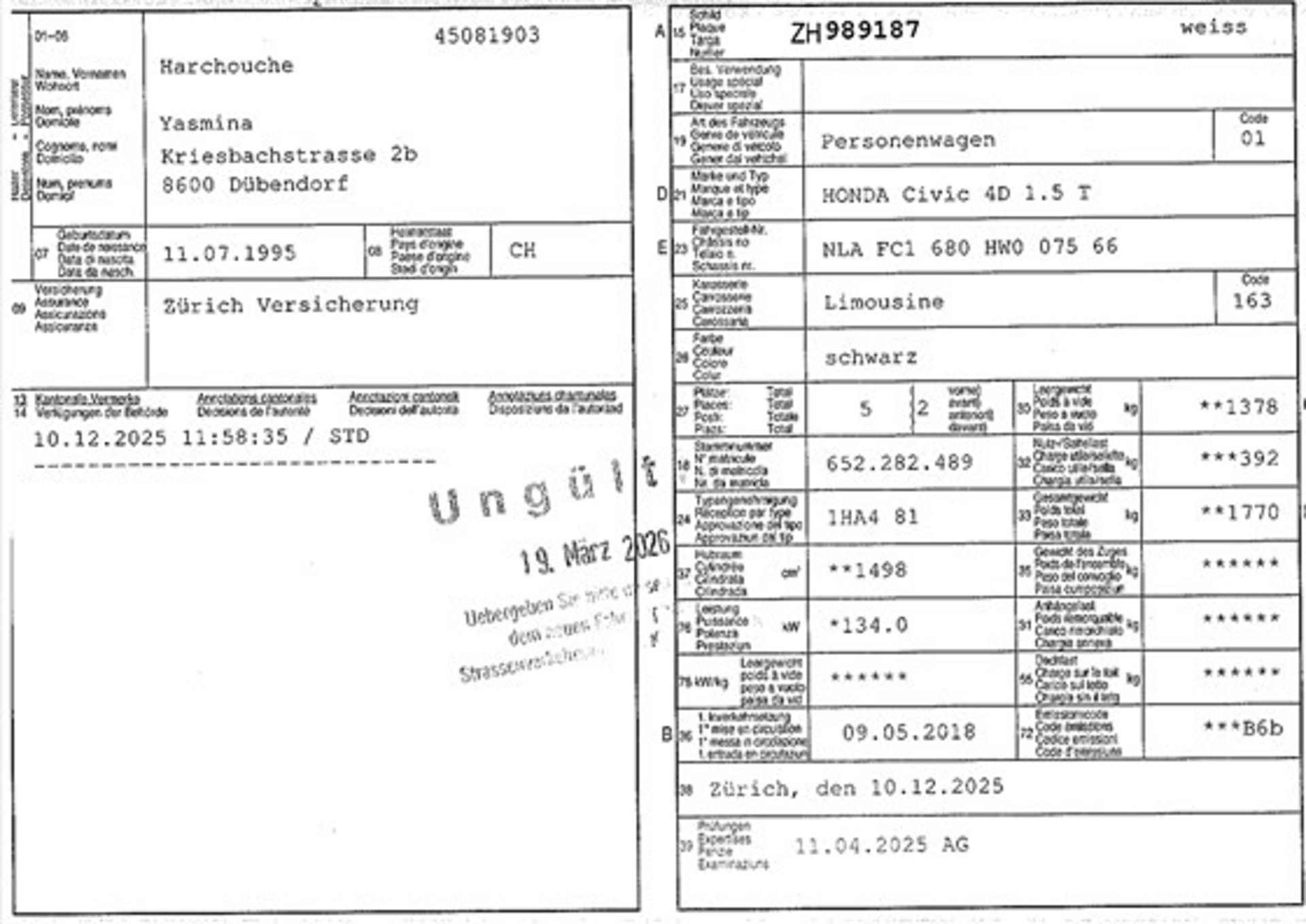 2018 HONDA Civic 4D 1.5 T