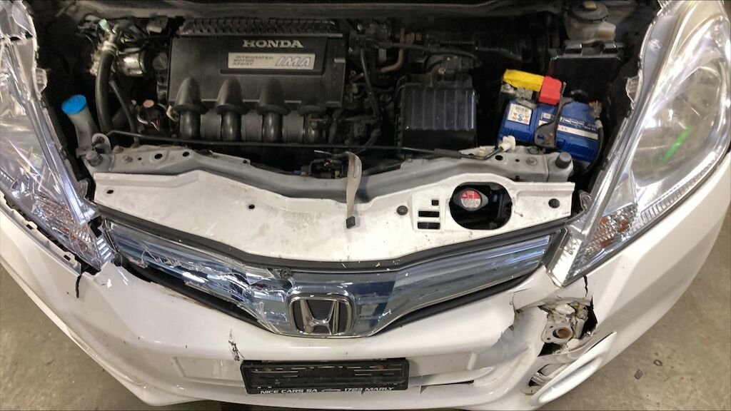 Zone avant: capot, par choc, deux phares, tôle frontale, radiateurs, renforts, enfoncés, pliés.