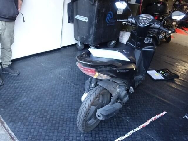 Feu AR - Bras oscillant - Vis + Roulement AR - Cache lat AV G - Châssis - Levier G - Poignée G - Rétroviseur G - Pare-boue AV.