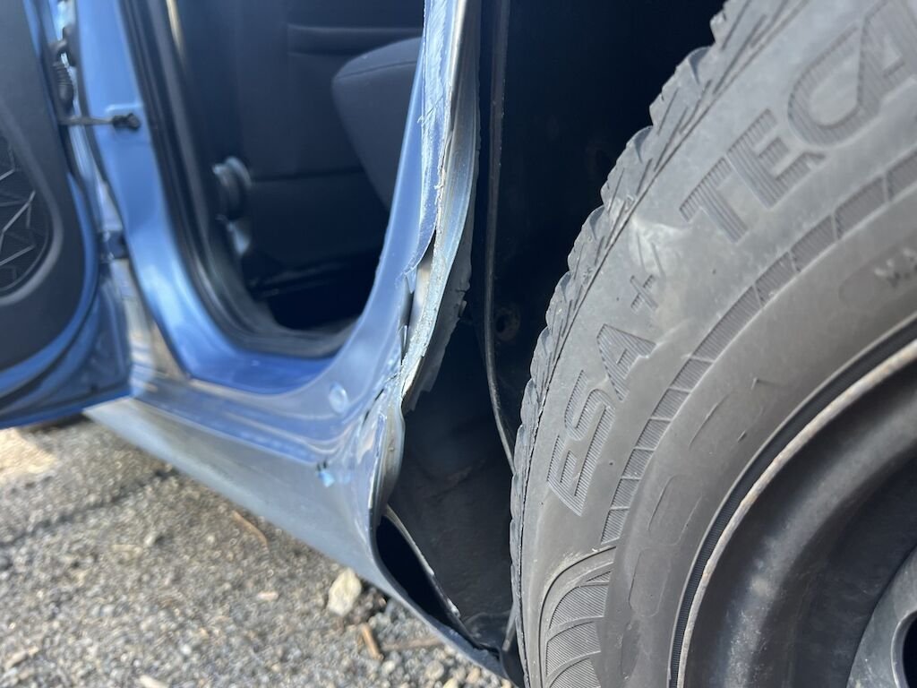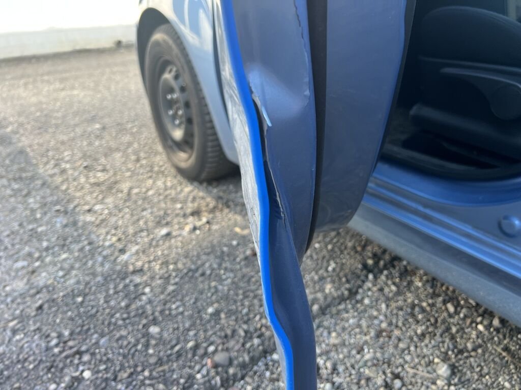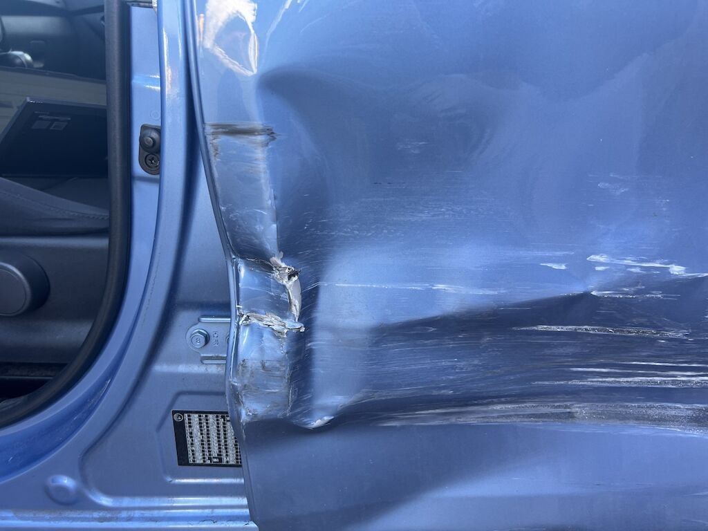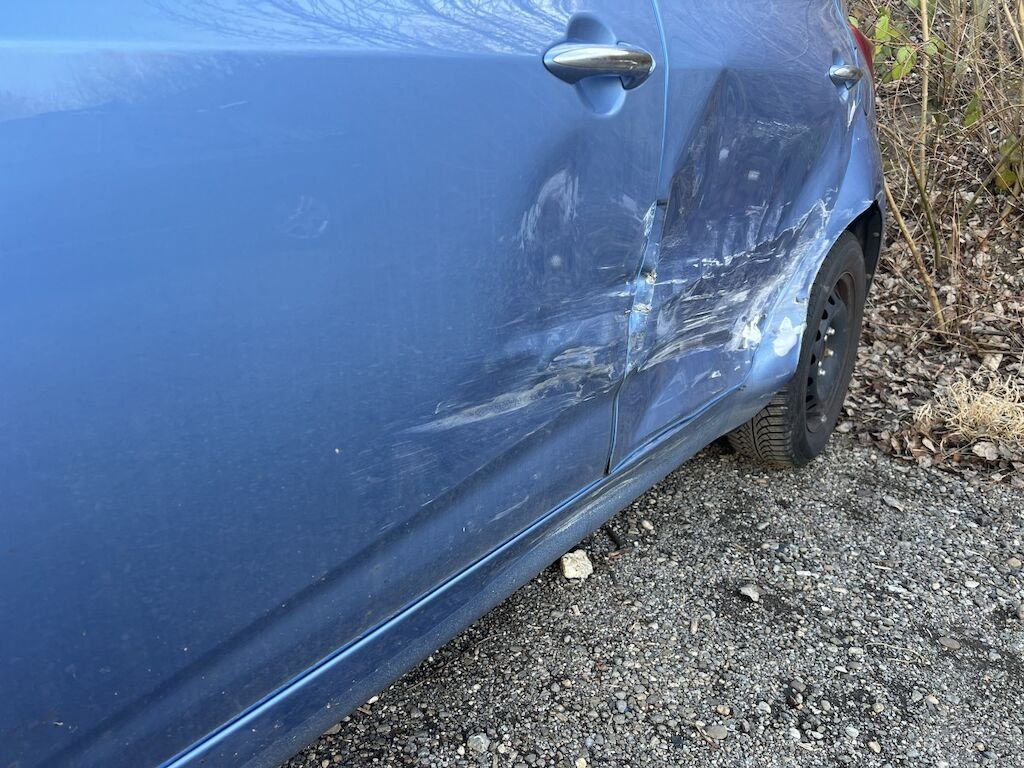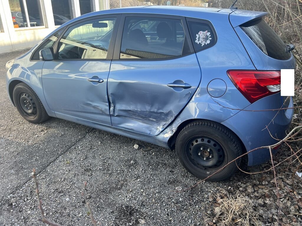 Schaden links: beide Türen, die Seitenwand und das Kniestück sind beschädigt. Schadenaufzählung ist nicht abschliessend, da Fahrzeug unzerlegt begutachtet wurde.