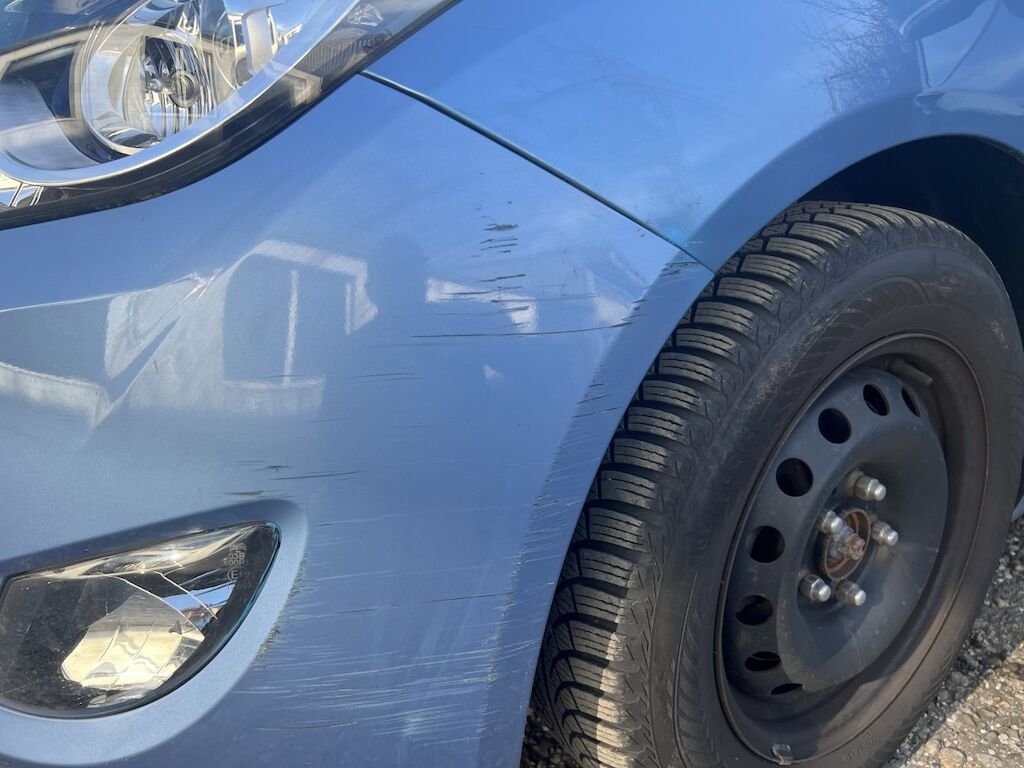 Stossfänger vorne ist an diversen Orten beschädigt.