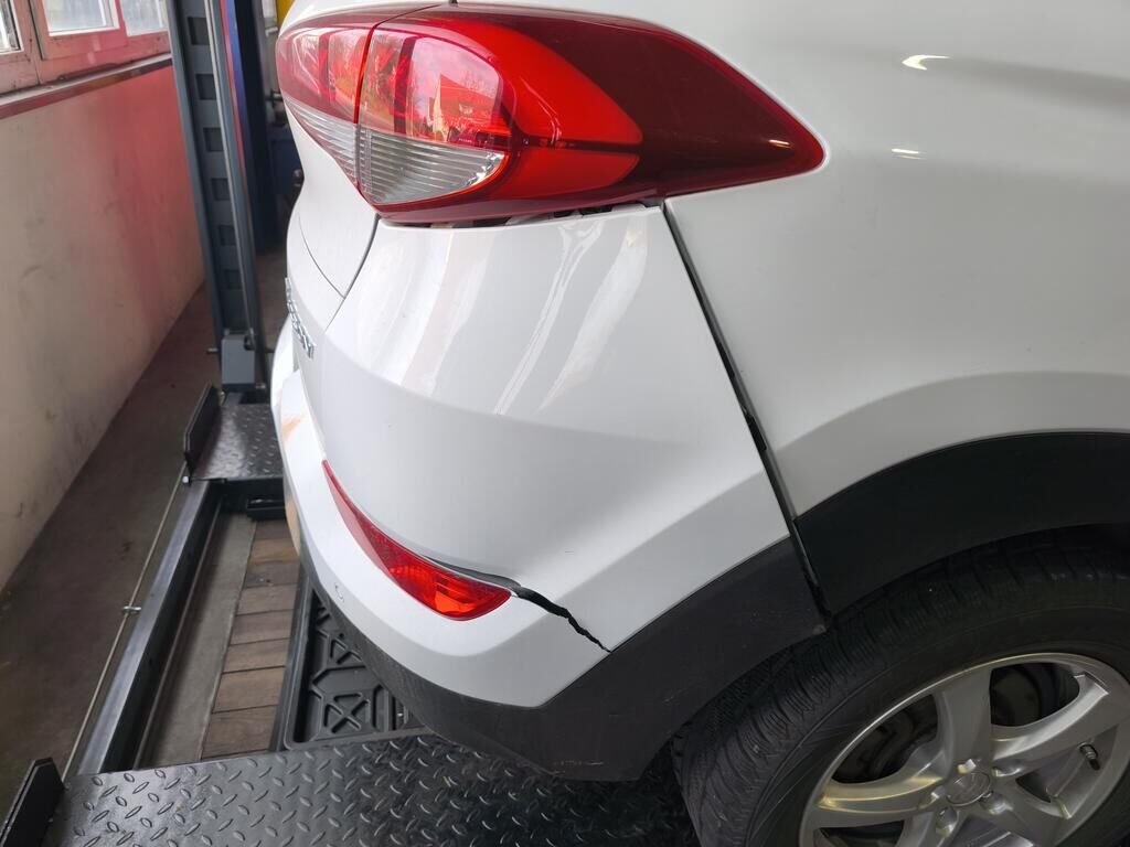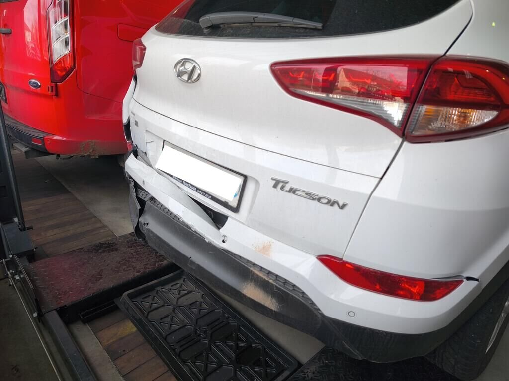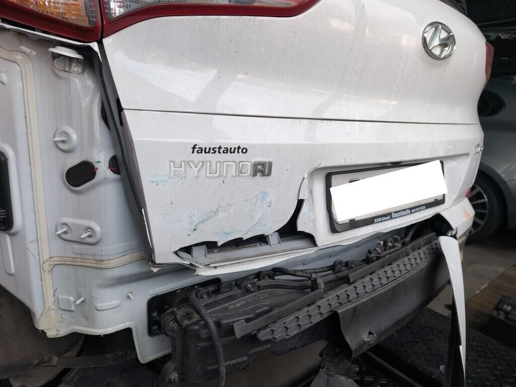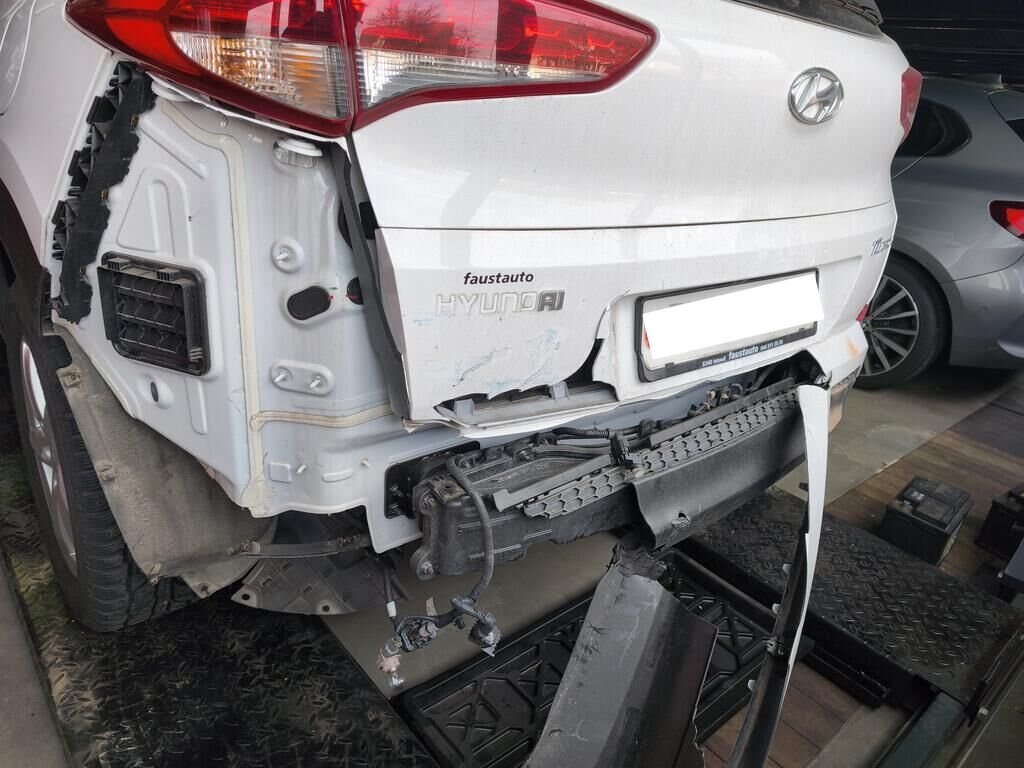 Beschädigt sind die komplette Stossstange hinten, der Aufprallträger und die Heckklappe im unteren Bereich.