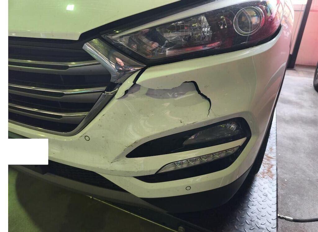 Beschädigt ist die Stosstange vorne links und das Frontgitter.
