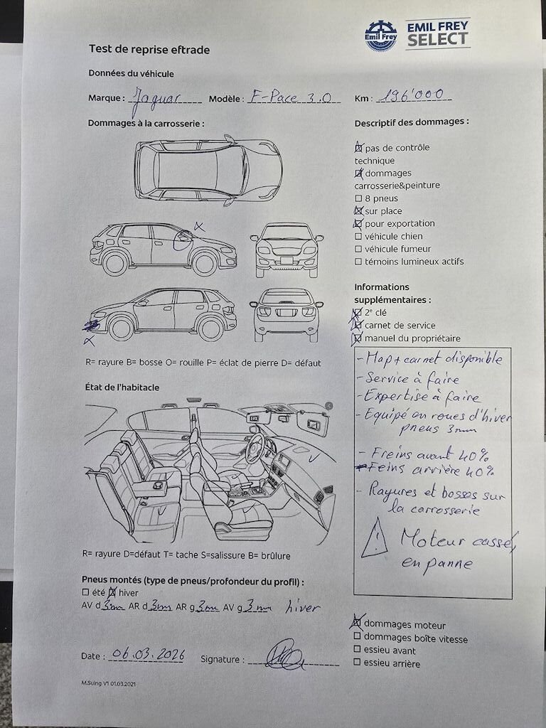 MOTEUR CASSER EN PANNE - Schaden-Nr.Pas de sinistre