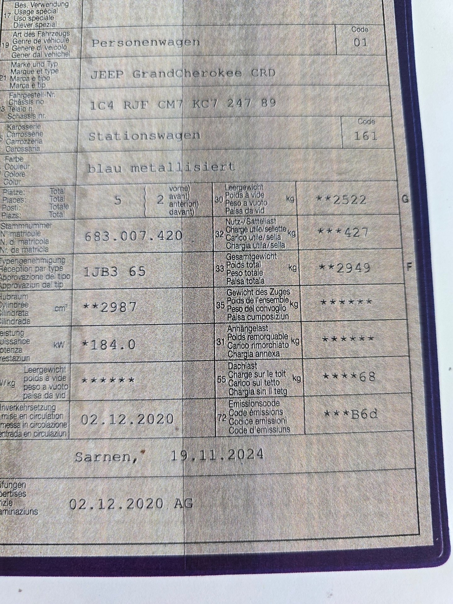 2020 JEEP GrandCherokee CRD
