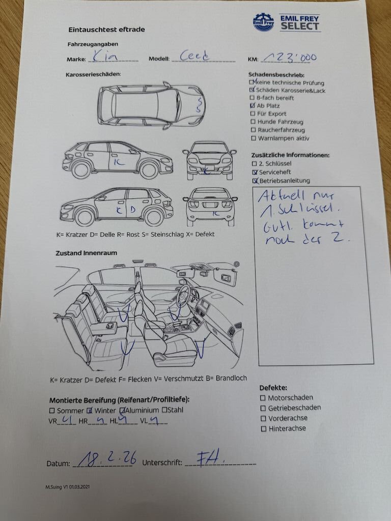 Keine technische Prüfung (Werkstatttest) vorgenommen