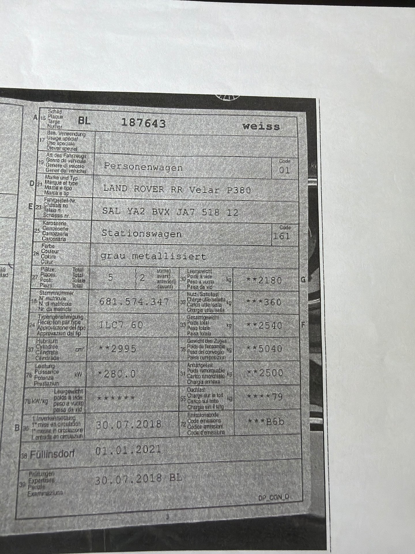 2018 LAND ROVER RR Velar P380