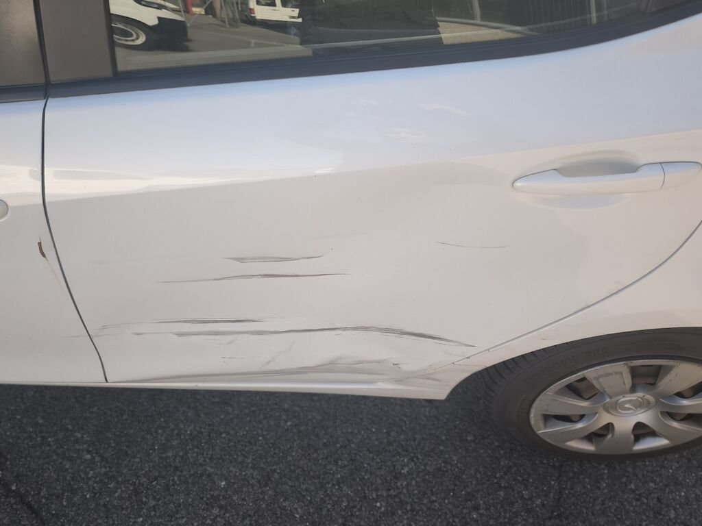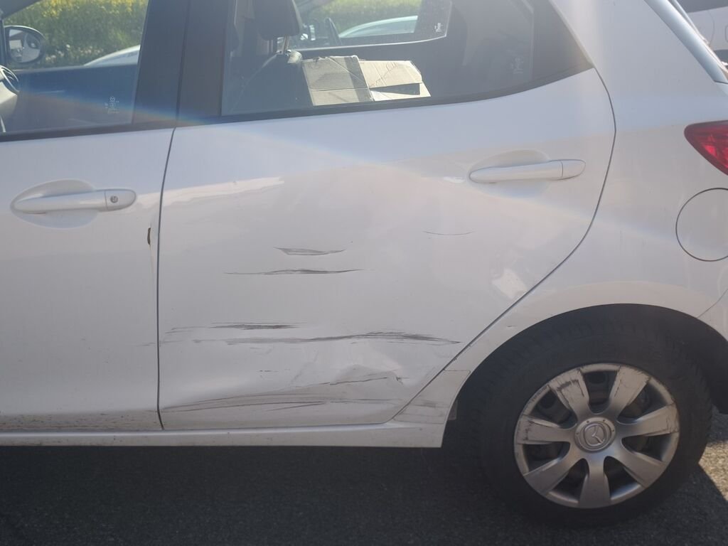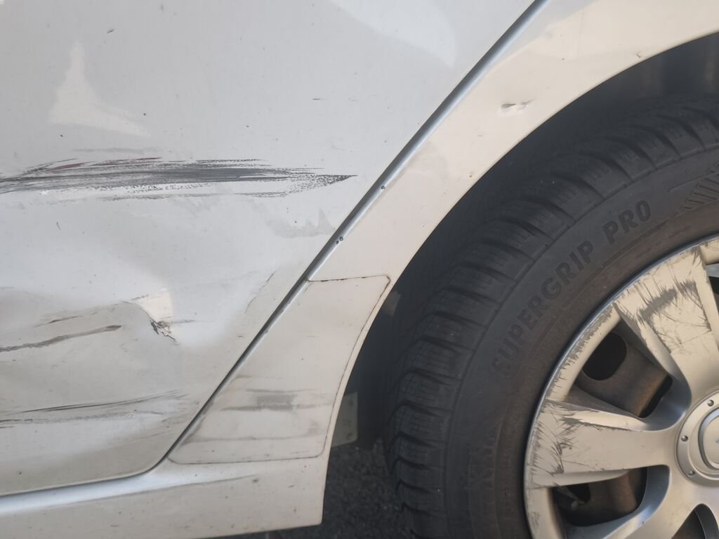 Aile arrière gauche, porte arrière gauche, porte avant gauche, rétroviseur gauche.