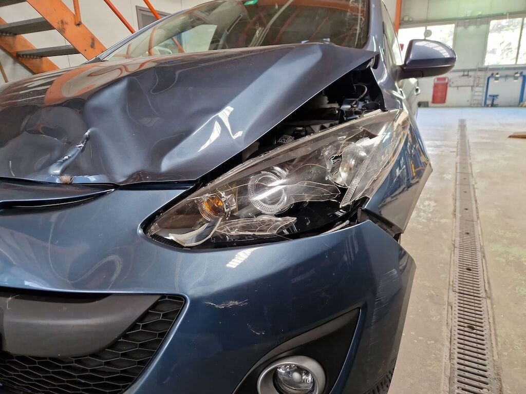 Stossstange, Motorhaube, Scheinwerfer, Kotflügel, Fahrertüre sowie diversen Anbauteilen
