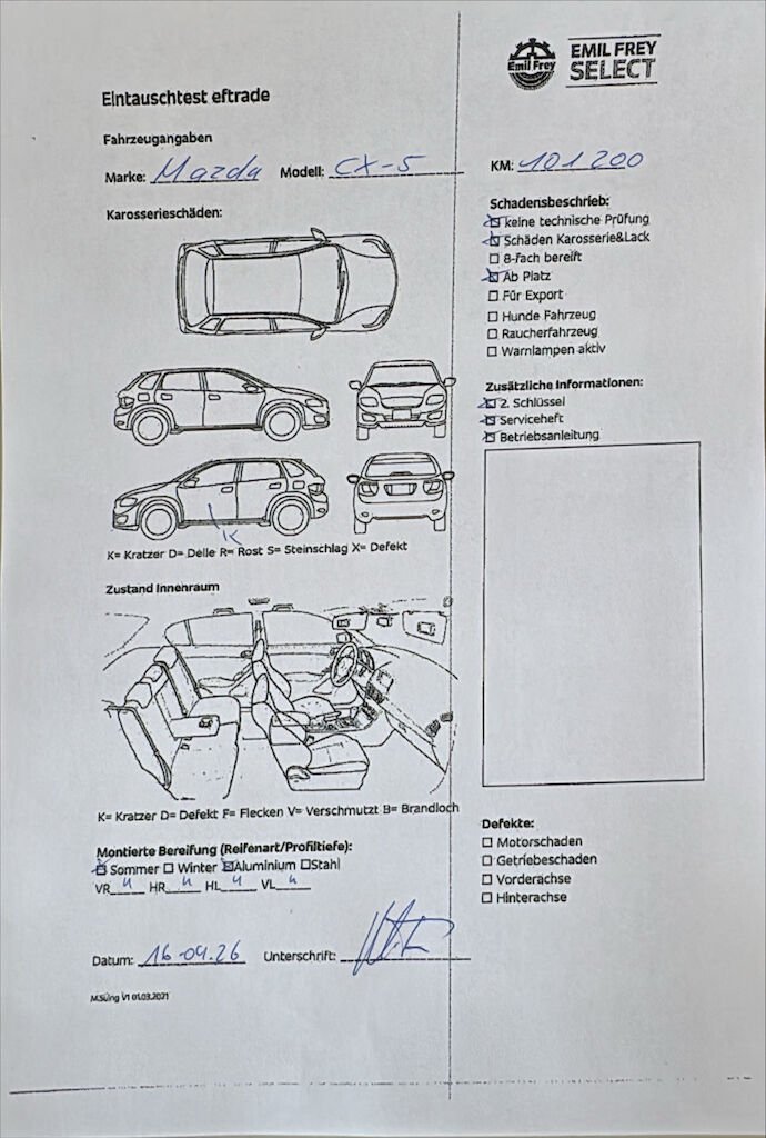 Keine technische Prüfung (Werkstatttest) vorgenommen