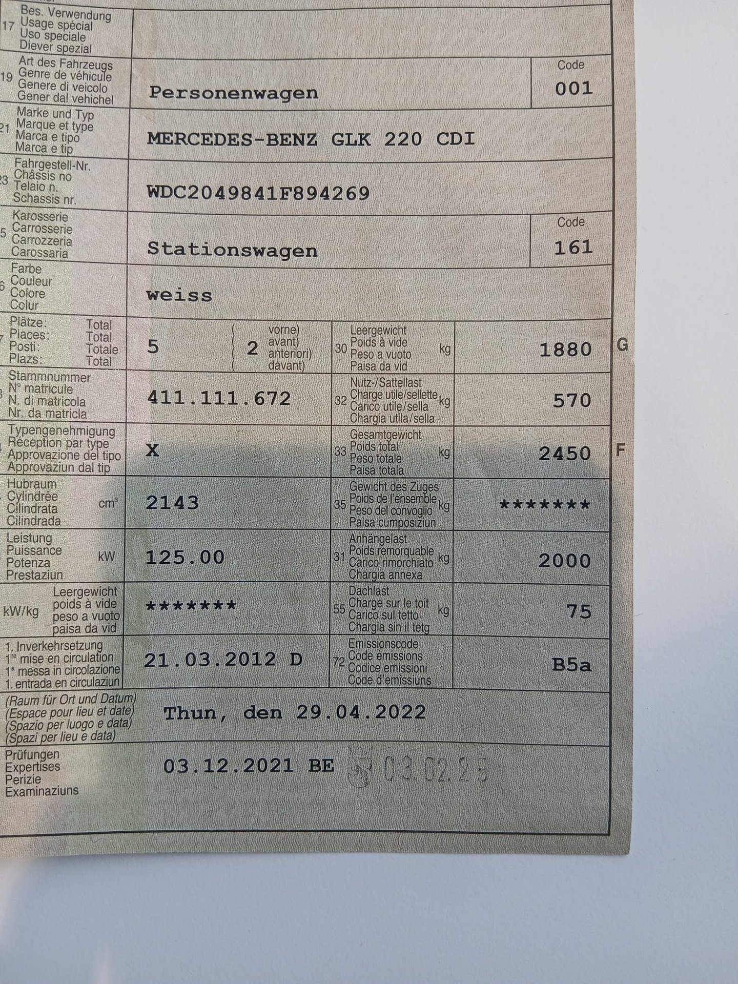 2012 MERCEDES-ADRIA MERCEDES-BENZ GLK 220 CDI
