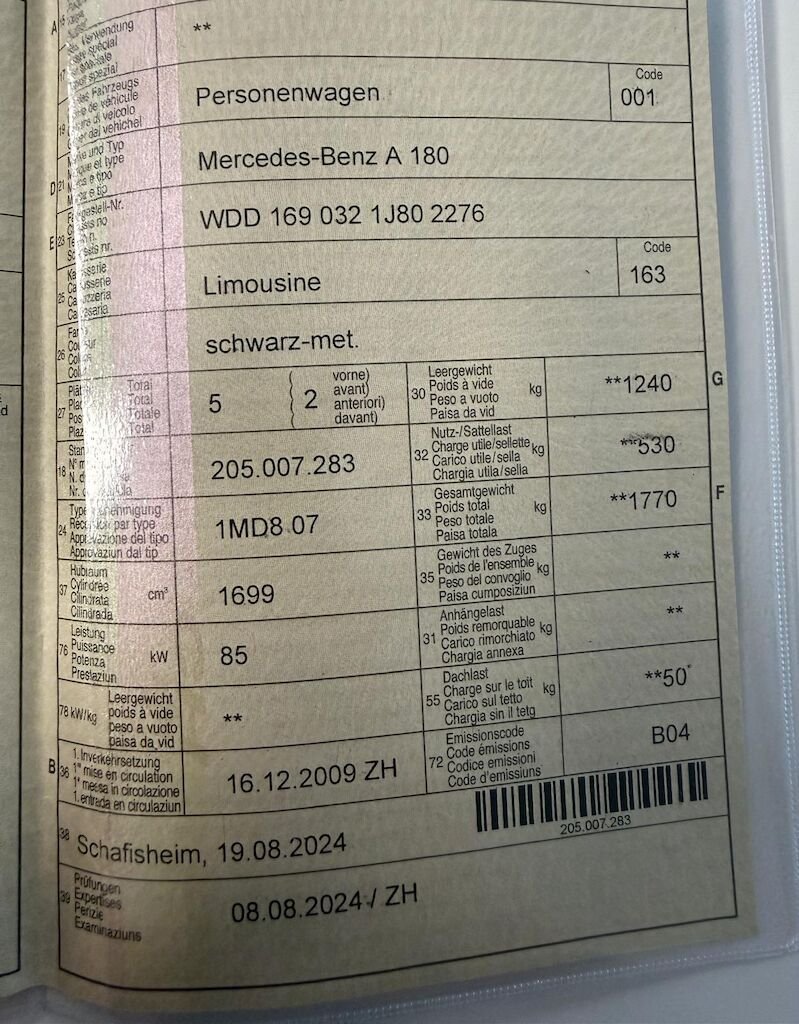 2009 Mercedes Benz A 180