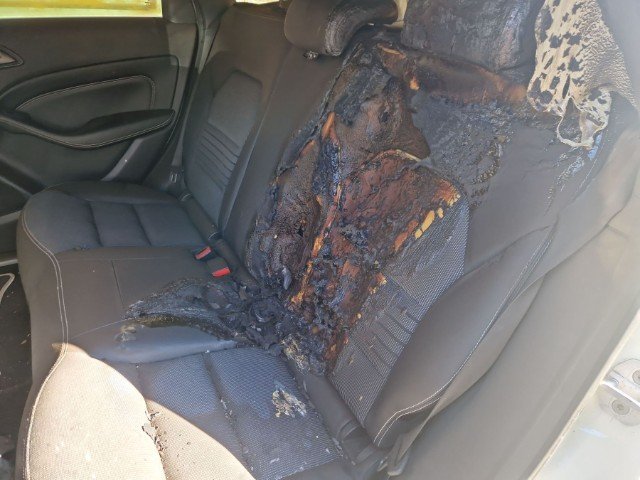 Fahrzeug weist im Innenraum Brandspuren auf.