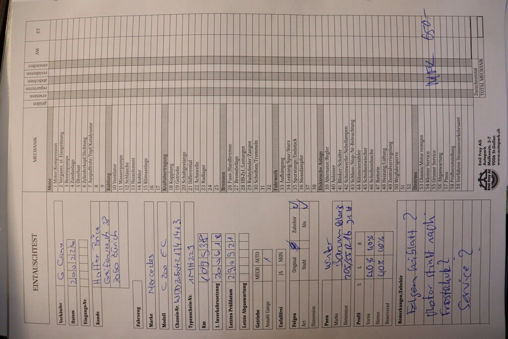 Keine technische Prüfung (Werkstatttest) vorgenommen