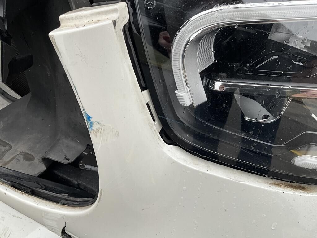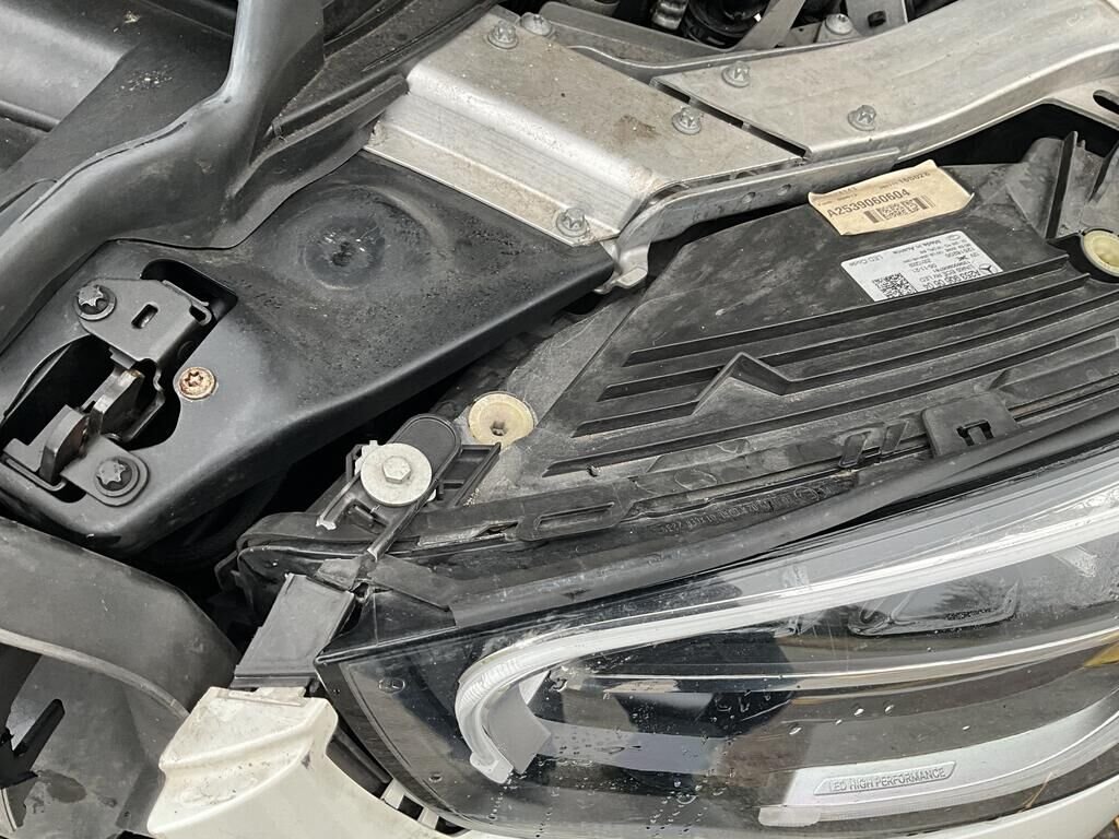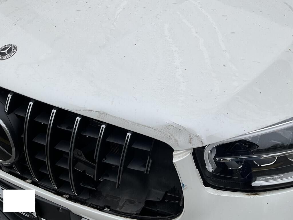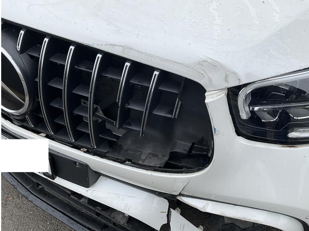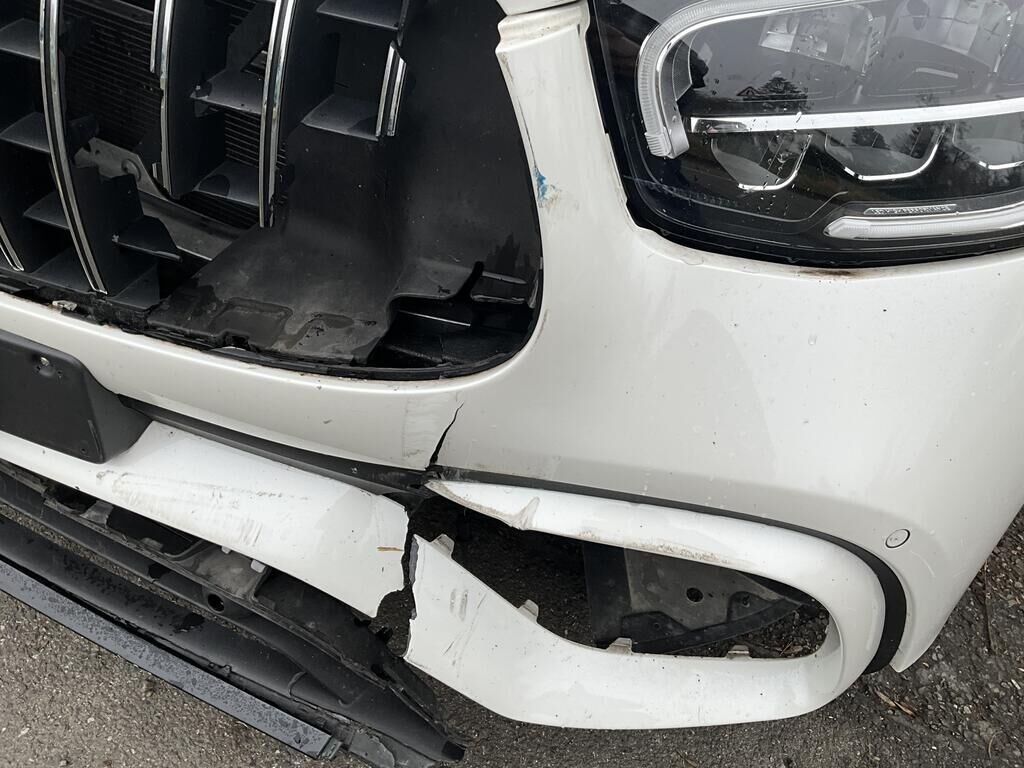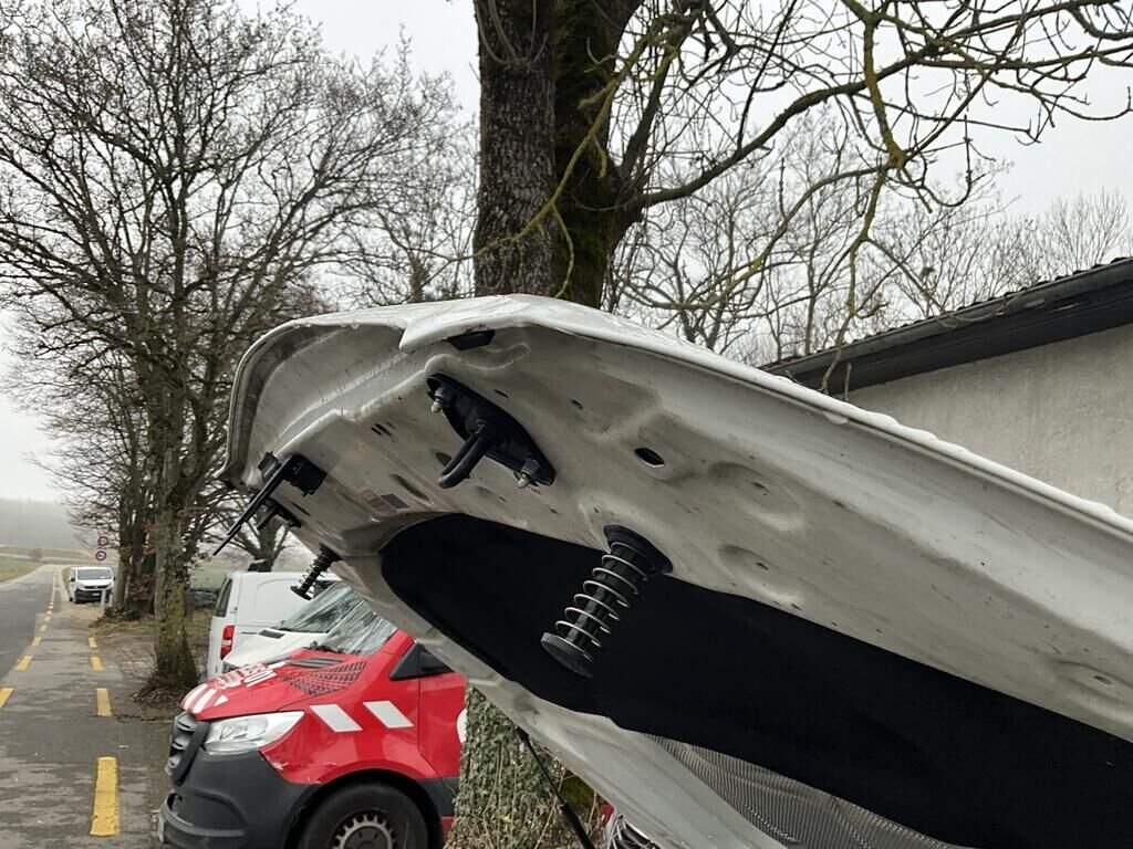 Capot, charnière de capot, aile AVG et AVD enfoncés. Pare chocs AV, calandre, phare AVG, convoyeur d'air endommagés. Protection de piétons déclenchés. Train AVG plié. Tourelle de suspension AVG enfoncée.