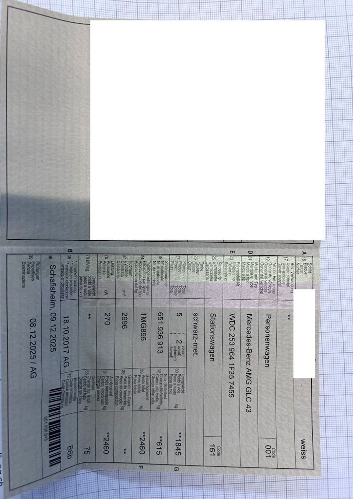 - Steinschlag auf der Motorhaube - Typenschein1MG895