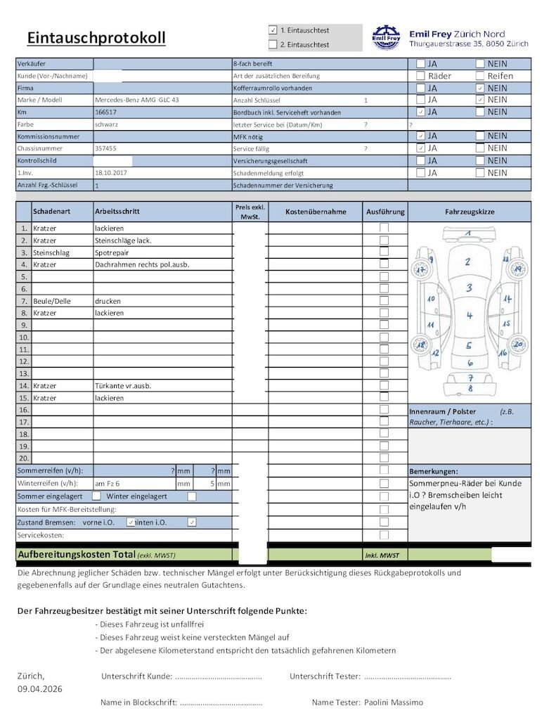 Keine Gewähr auf die Angaben der Sonder- und Serienausstattung / keine mechanische Prüfung. Fahrzeug wurde unzerlegt expertisiert / keine Haftung für allfällige, nach Demontage bekanntwerdenden Mängel. Fahrzeugbereifung und Ausstattung gemäss Fotos / Fahrzeugkauf auf eigenes Risiko ab Platz ohne Nachwährschaft.