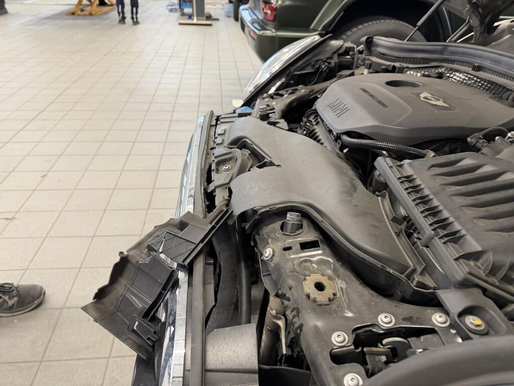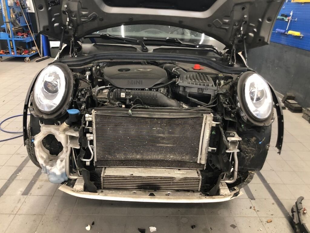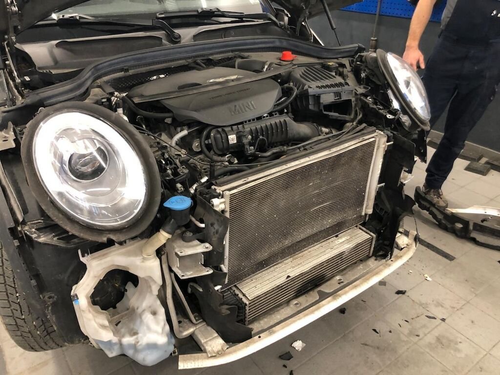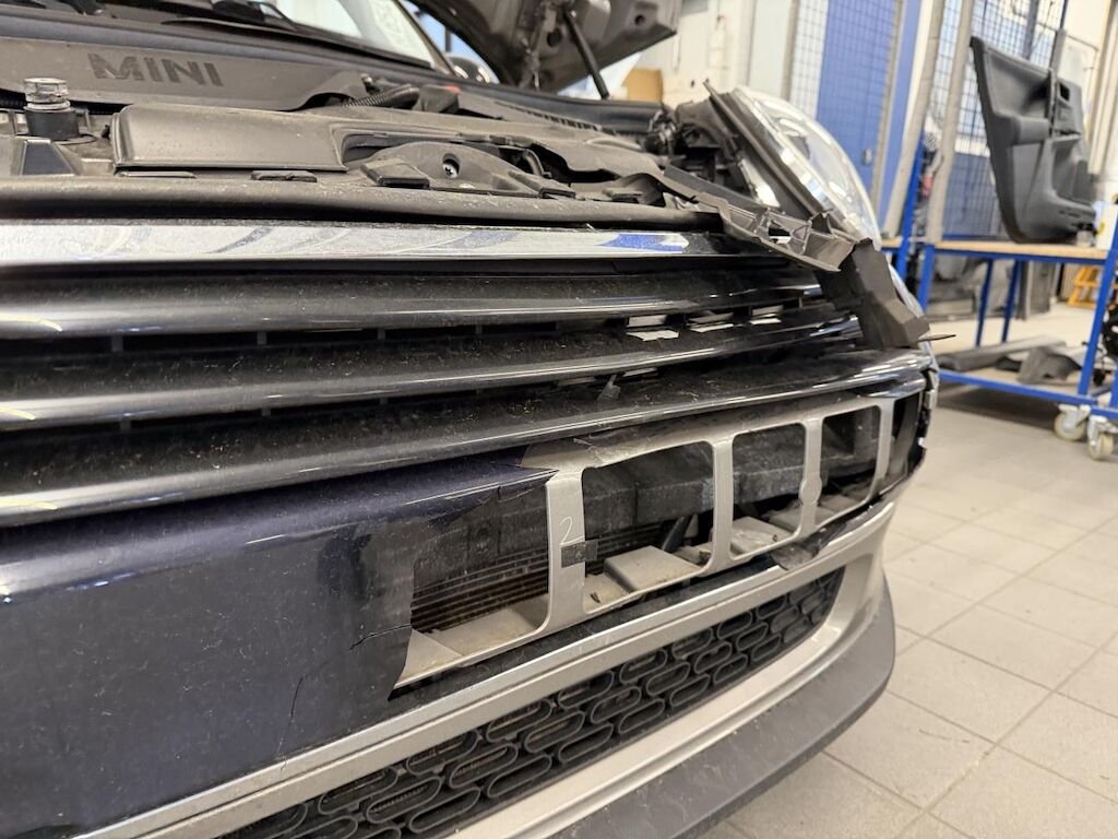 Dabei wurden die Motorhaube, die Stossstange, der rechte Kotflügel, der Querträger, das Kühlerpaket, der Querträger, beide Deformationselemente, beide Motorhaubenscharniere, der linke Scheinwerfer sowie diverse Anbauteile deformiert und gebrochen.