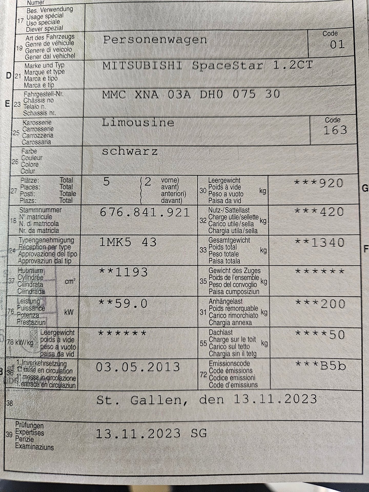 2013 MITSUBISHI SpaceStar 1.2CT