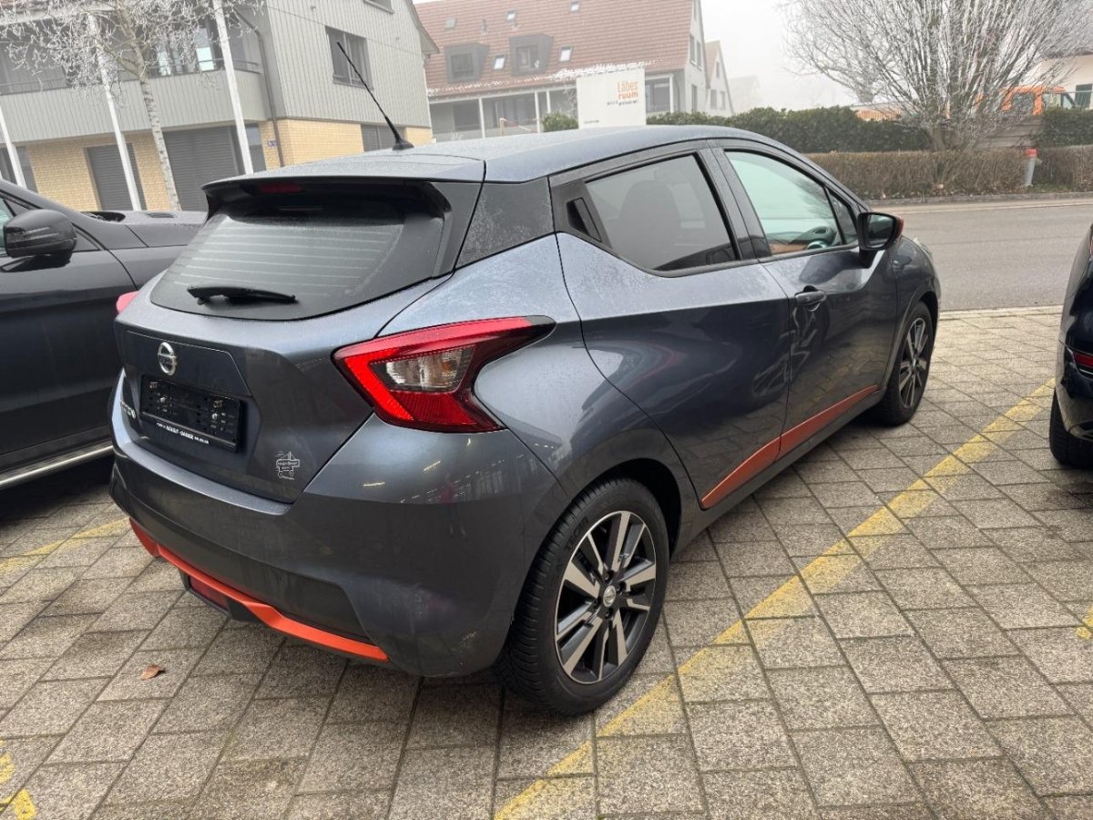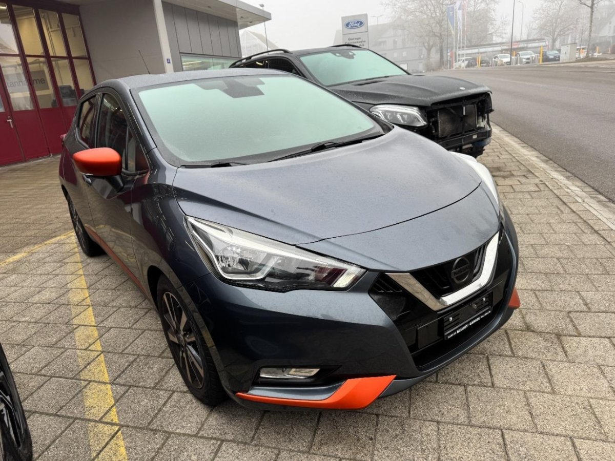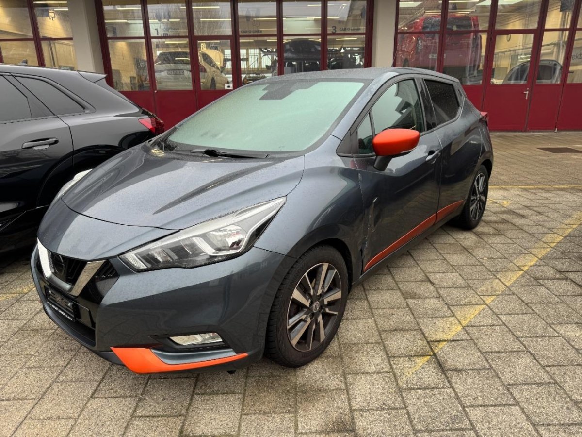 - Serial equipmentReifenreparatur-Set mit Kompressor, Airbag: Airbag Beifahrer deaktivierbar, Rücksitze geteilt abklappbar, Lenkrad höhenverstellbar, Licht: LED-Tagfahrlicht, Make up-Spiegel rechts, Sportlederlenkrad mit Dekoreinlagen, Halogenscheinwerfer, Licht: Fahrlichtautomatik, Kniepolsterung an der Mittelkonsole, Aktive Fahrkomfortregelung, Hill-Start Assist (HSA), Info-Display, Getönte Scheiben, Aussentemperaturanzeige, Türgriffe aussen in Wagenfarbe, Design Paket: verdunkelte Scheiben ab B-Säule, Nebelscheinwerfer vorne, Schalthebelknauf mit Dekoreinlagen, Sitze: ISOFIX-Befestigungspunkte für Kindersitz an den äusseren Rücksitzen, Pollenfilter (Staubfilter), Aussenspiegel in Wagenfarbe, Drittes Bremslicht, Audio Paket: Audio-System mit Bluetooth, USB-Schnittstelle und 2 Lautsprechern, Cupholder vorne und hinten, Wegfahrsperre elektronisch, Assist: Warnblinkautomatik bei Vollbremsung, Stopp-/Start-System, Katalysator geregelt, Scheibenwischer vorne mit Intervall, Aussenspiegel elektrisch einklappbar, Notbremsassistent, Gangempfehlung, Blinker in Aussenspiegel, Dachspoiler, Elektronisches Stabilitäts-Programm (ESP), Lackierung: Uni-Lackierung, Frontscheibe Verbundglas, Make up-Spiegel links, Spurverlassenswarnung, Comfort Paket: Klimaautomatik inkl. Pollenfilter, INTELLIGENT KEY mit Start/ Stop Knopf, 4 Leichtmetallfelgen 16J mit Pneu, Stoff-Ausstattung, Heckscheibenheizung, 5-Gang-Getriebe, Airbag: Airbag Fahrer und Beifahrer, Elektrische Fensterheber vorne, Sportlenkrad, Steckdose 12V, Zentralverriegelung mit Fernbedienung, ABS, EBD elektronische Bremskraftverteilung, Kopfstützen hinten, 2 Hochtonlautsprecher (Tweeter), Nebelschlussleuchte, Heckscheibenwischer, zweistufig, Seitenairbags vorne und Kopfairbags vorne und hinten, Touchscreen, Staufach vorne in der Mittelkonsole, Multifunktionslenkrad, 2 Türlautsprecher vorne, Ablagen in den Türen, NissanConnect Navigationssystem mit 7' Farbdisplay und Touch inkl. TMC Radio,CD,MP3,AUX,USB,IPod,4 Lautsprecher Bluetooth,Google,MapCare,, Sitze: Fahrersitz höhenverstellbar