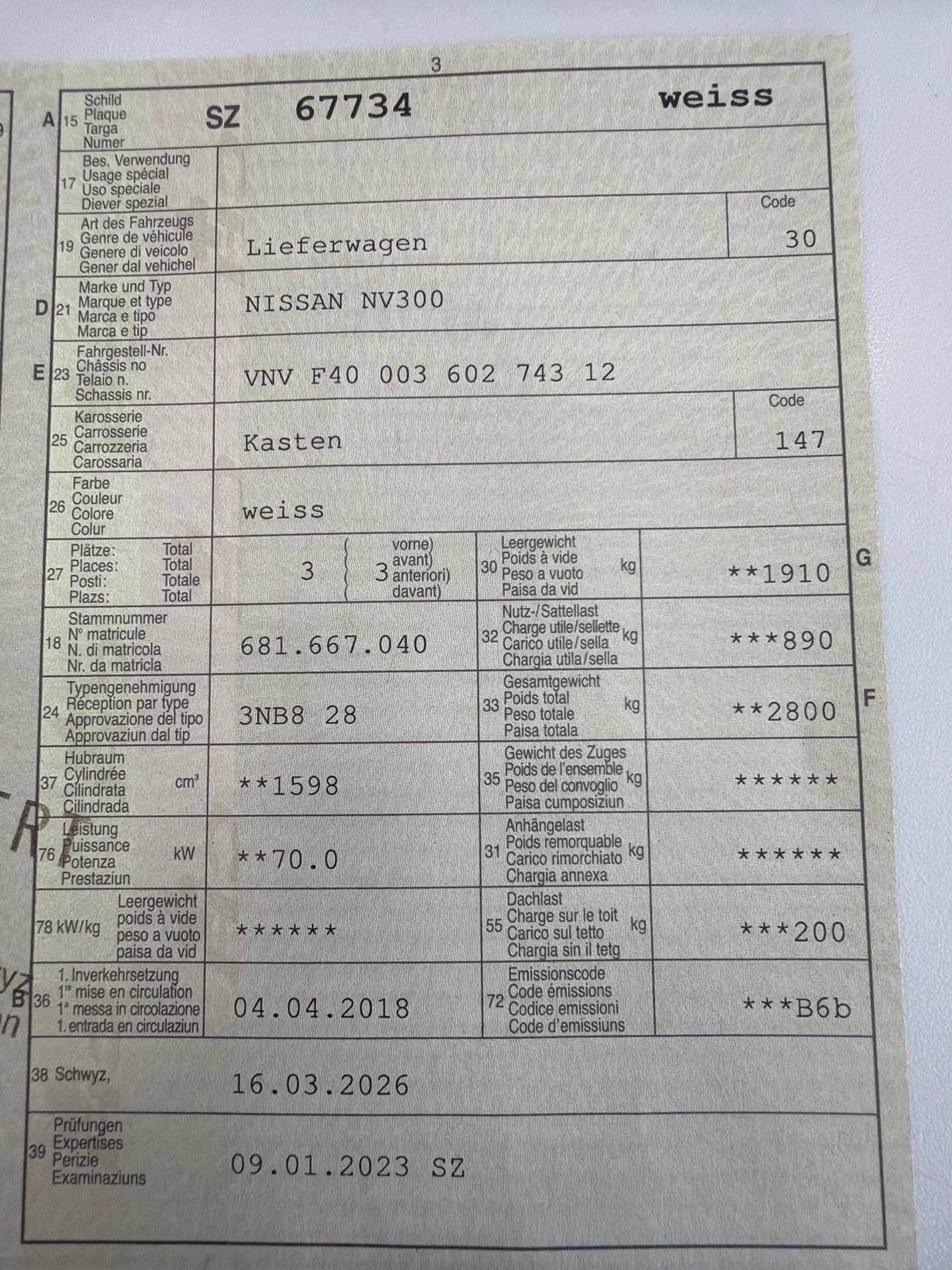 2018 NISSAN NV300