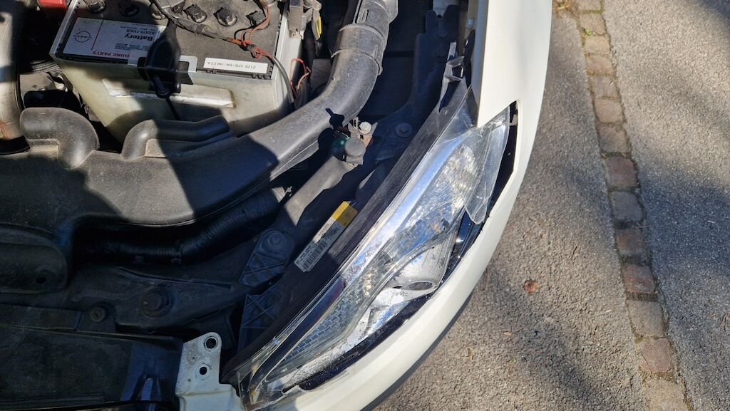 Frontschaden: Kotflügel, scheinwerfer, Stosstange beschädigt