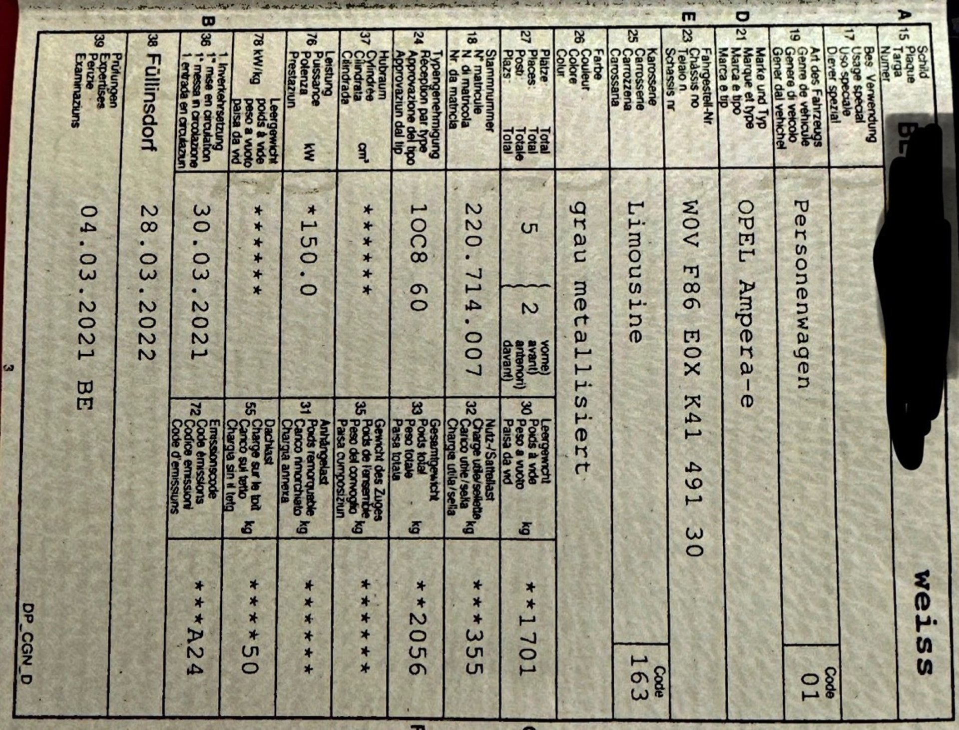 2021 OPEL Ampera-e