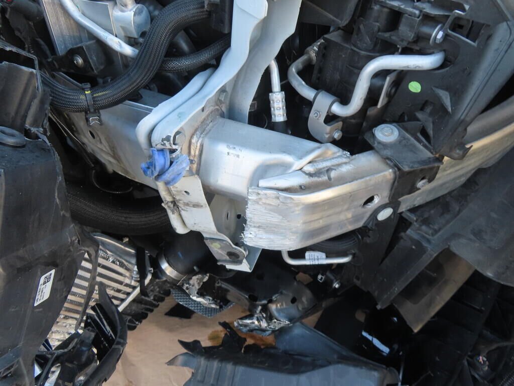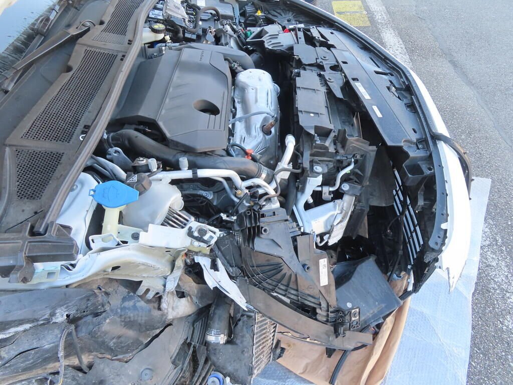 Pare-chocs avant, tôle de renfort avant, traverse avant, grille de calandre, aile avant gauche, écran pare-boue avant, capot moteur, phare droit, habillage du pare-chocs avant, arbre de transmission, bras de suspension avant droit, fusée avant, amortisseur, radiateur, échangeur d'air, support essieu avant et arrière, jantes avant et arrière droit, etc; endommagés