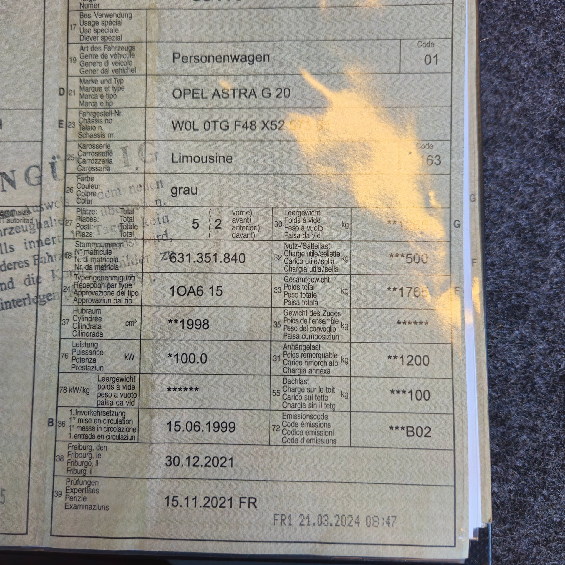 1999 OPEL Astra G20