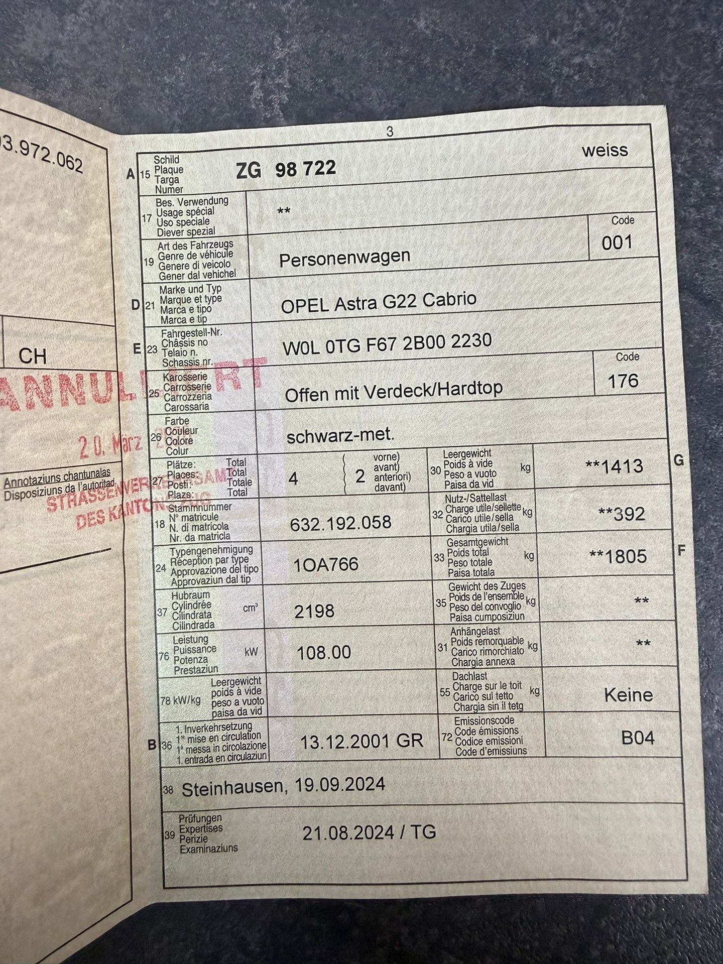 2001 OPEL Astra G22 Cabrio