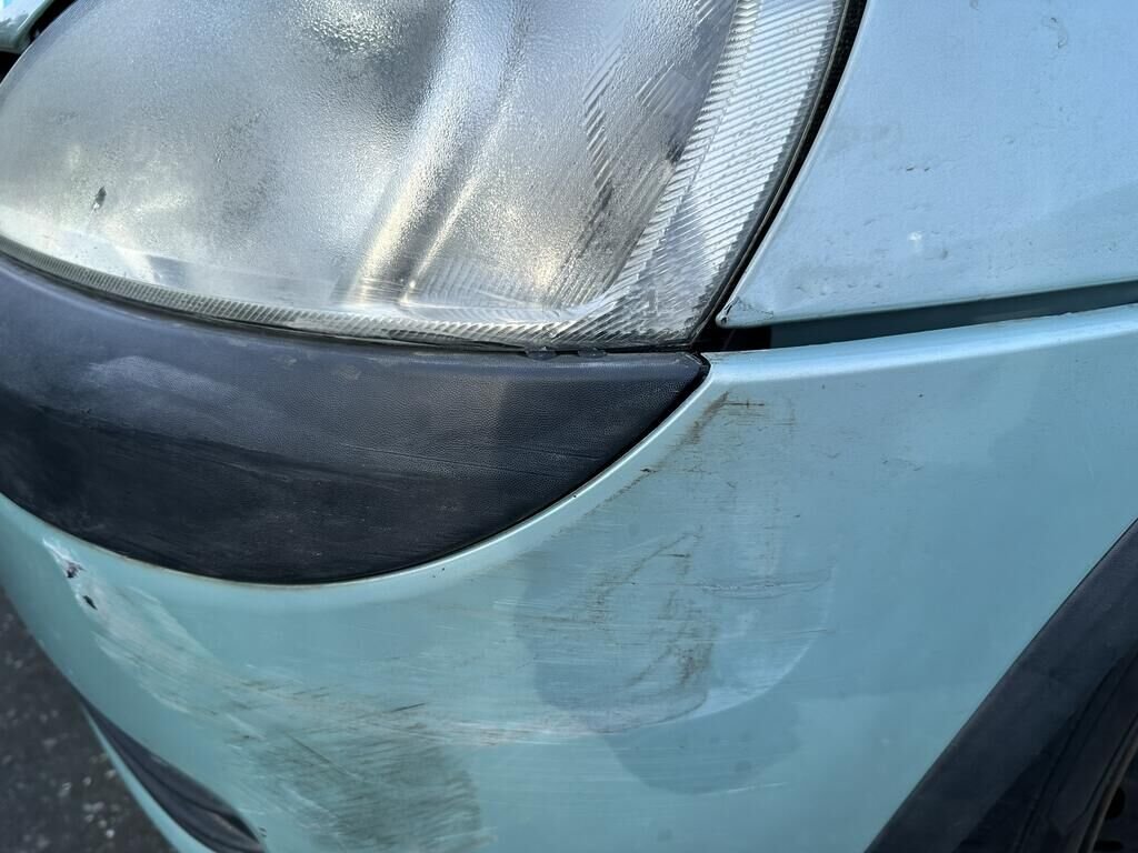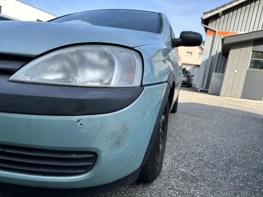 Durch Anprall wurde der Stossfänger vorne, Scheinwerfer links und der Kotflügel links deformiert.