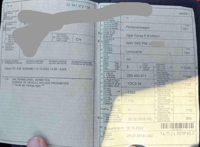 Fahrzeugdokumente vorhanden.