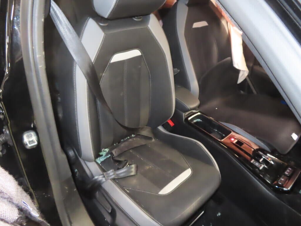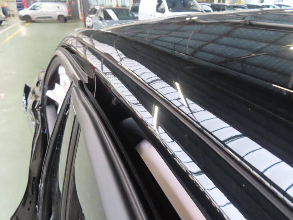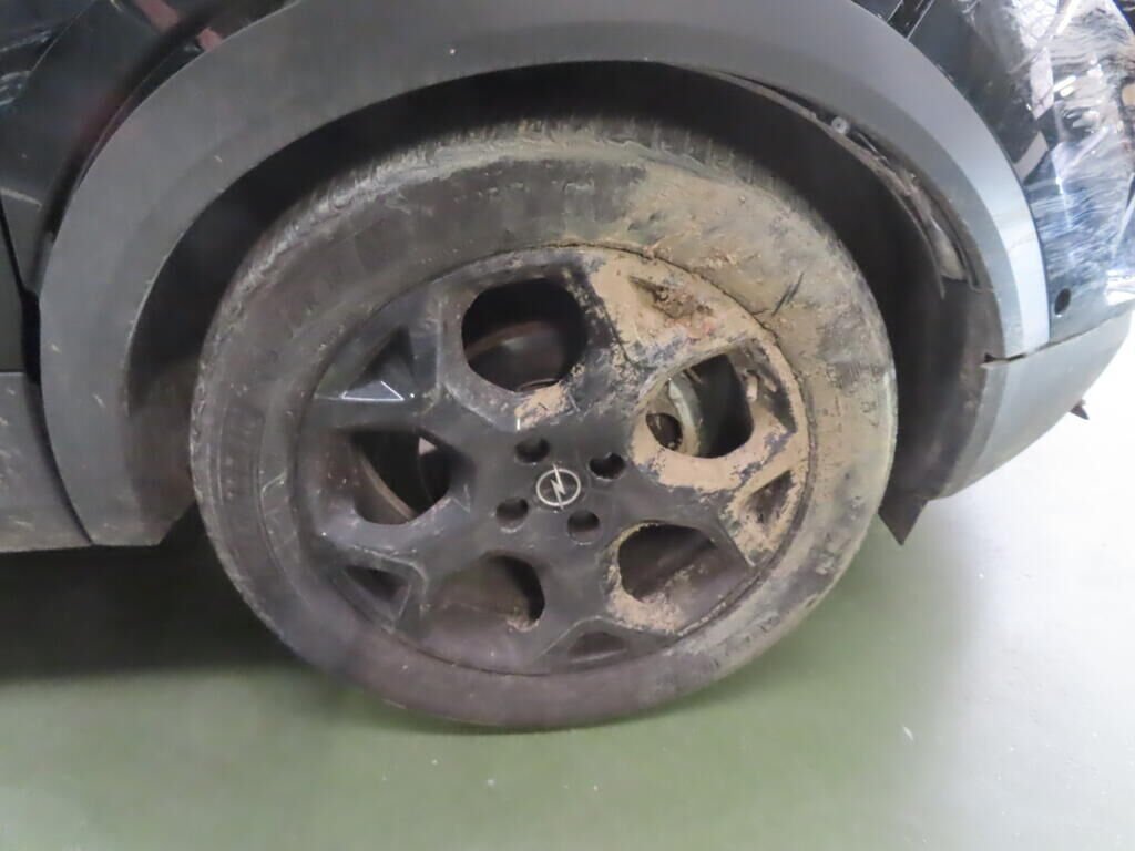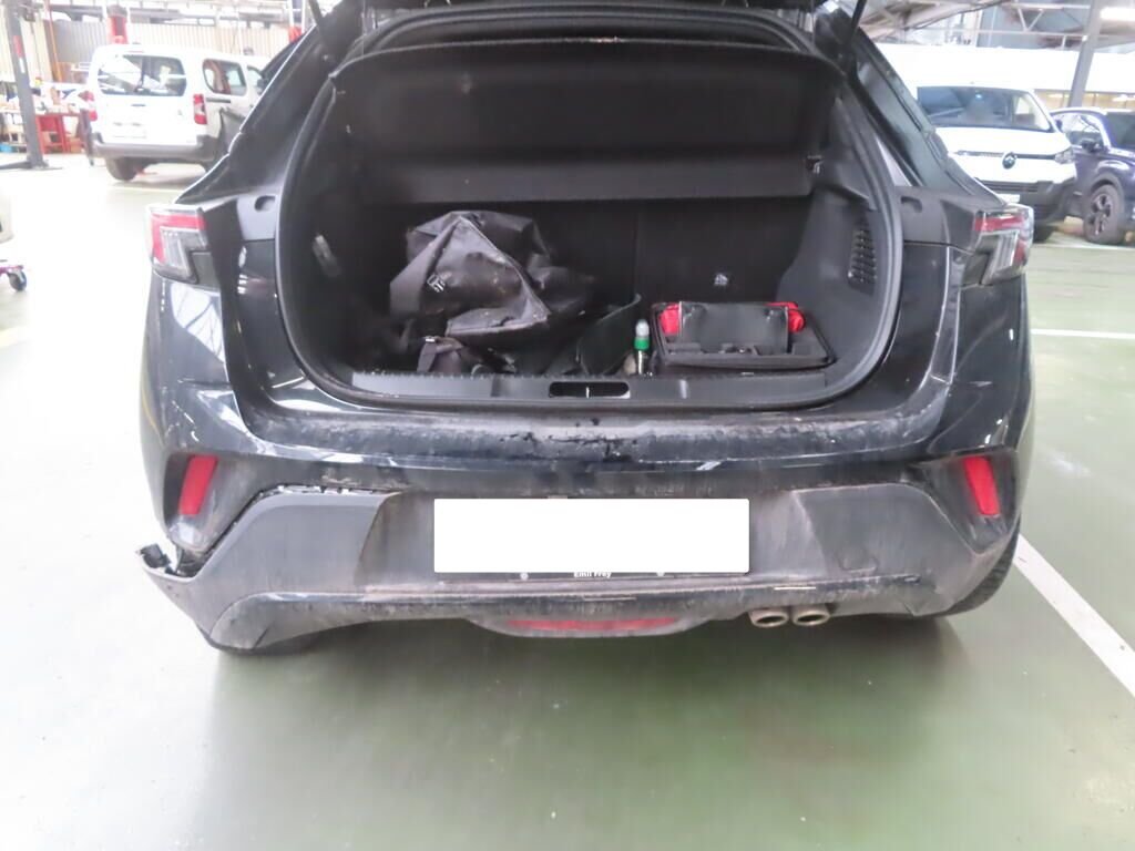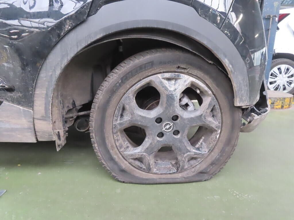 Avant, latéral gauche, suspension, roue, tôle arrière, montant B, toit, hayon, pare-chocs arrière, latéral droit; enfoncés et pliés.