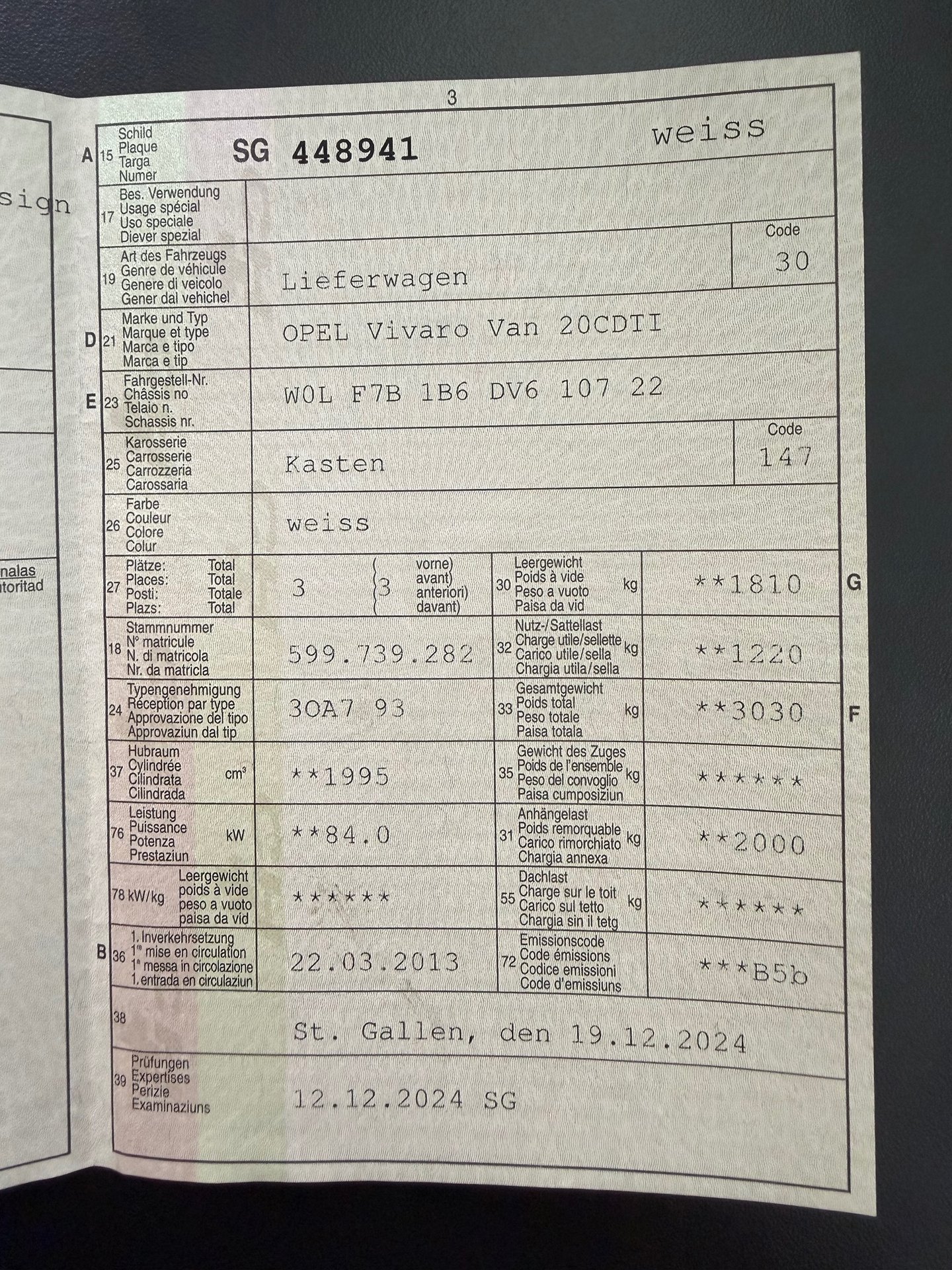 2013 OPEL Vivaro Van 20CDTI