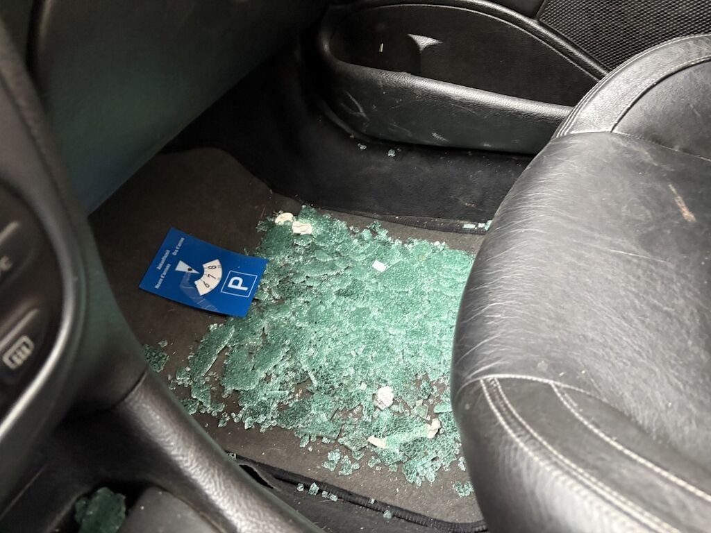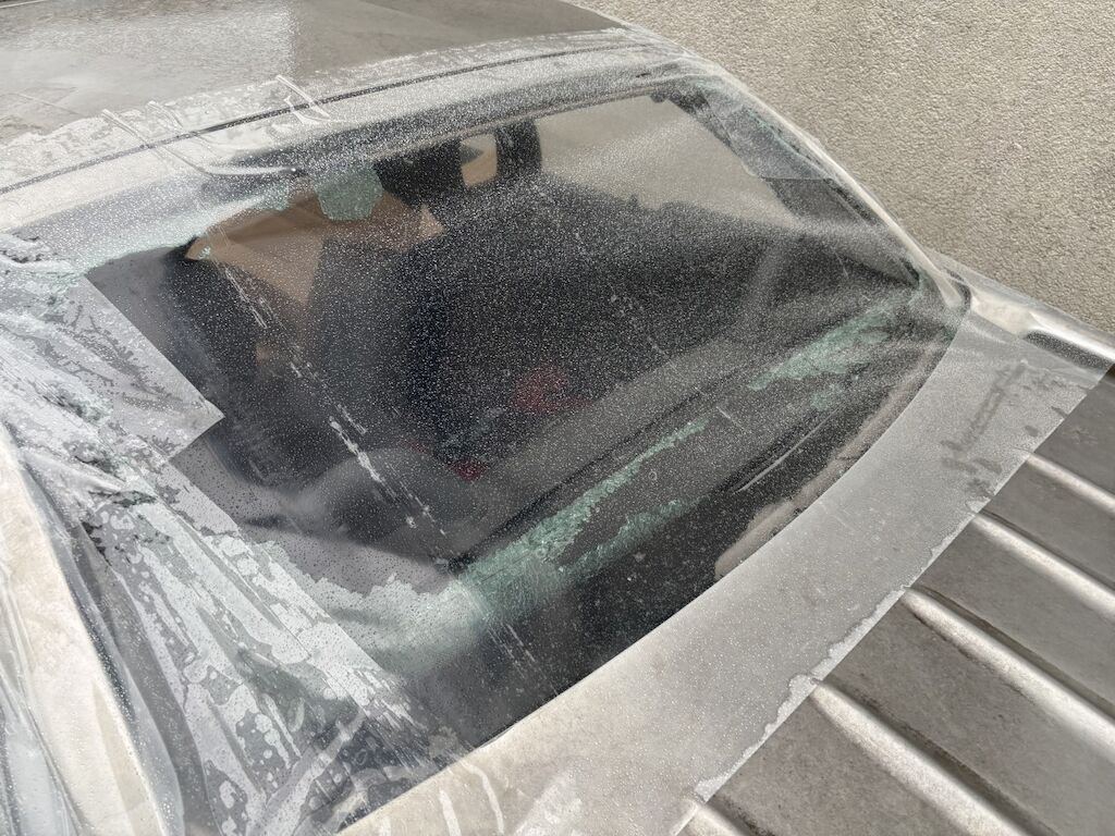 Vitres cassées : les deux vitres latérales gauche et droite, lunette AR.