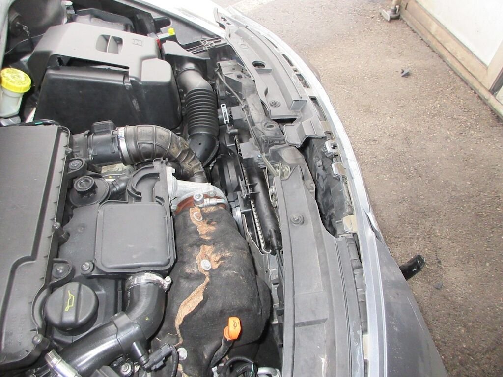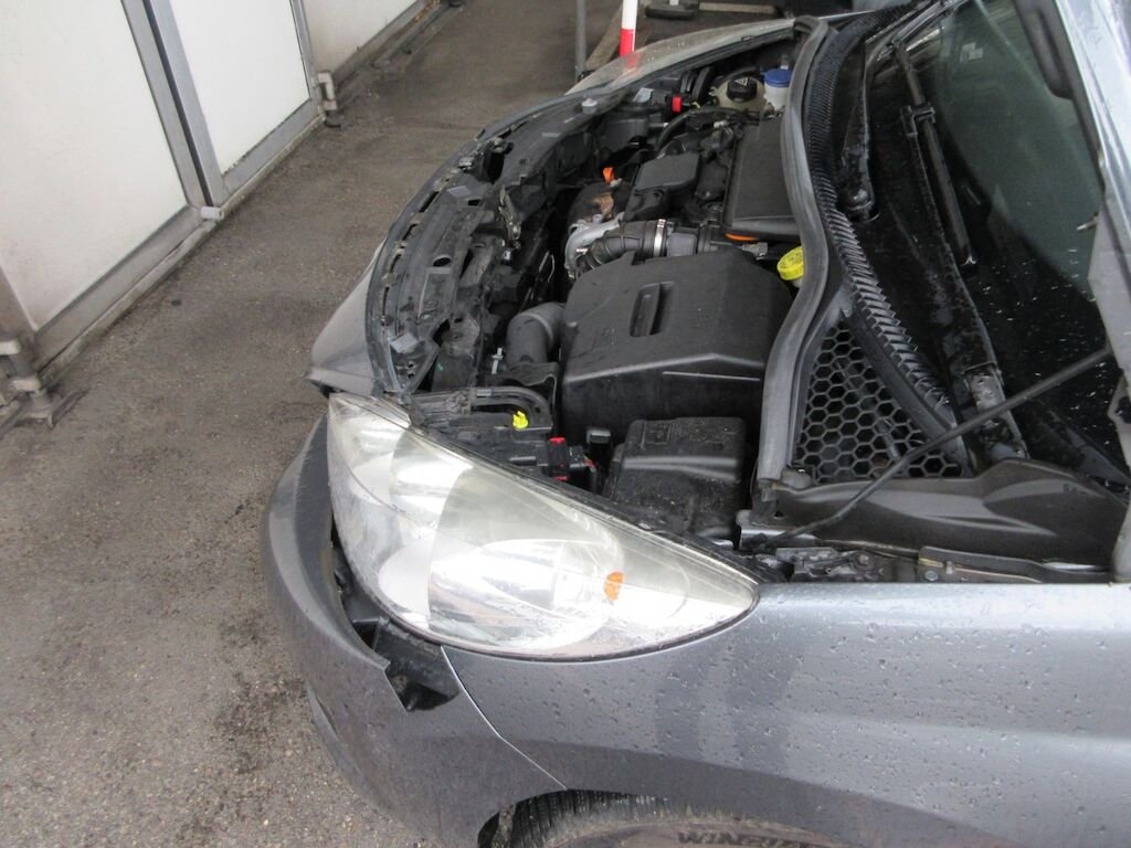 Stossfängerabdeckung komplett mit Kühlergrill, Scheinwerfer, Frontrahmen, Kühler mit Zarge und Lüfter beschädigt. Kotflügel rechts deformiert.