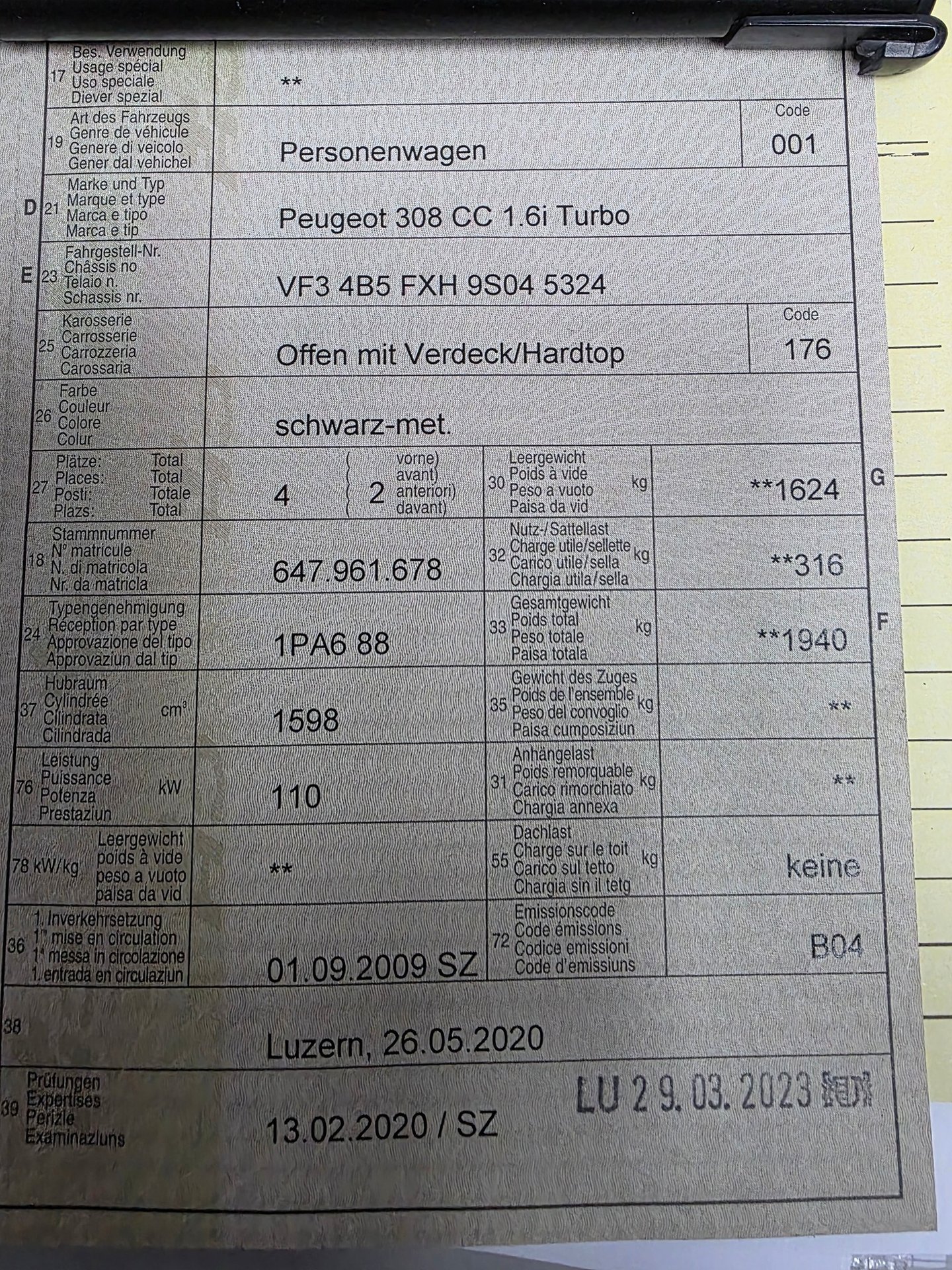 2009 PEUGEOT 308 CC 1.6i Turbo