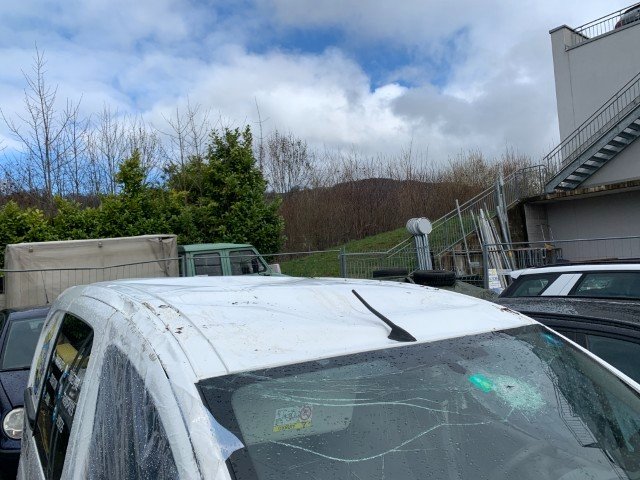 Windschutzscheibe + Motorhaube + Scheinwerfer links + rechts + komplette Frontstoßstange - Kotflügel vorne rechts + komplette Vordertür rechts - Seitenverkleidung rechts + Radlauf - Dach + Verstärkung + Dachhimmel - Hintertür links + Hintertür rechts + Türschlösser + Stoßstange hinten komplett - Seitenverkleidung links + Vordertür links komplett - Kotflügel vorne links + Radkasten - Motor - Servolenkung abgerissen.
