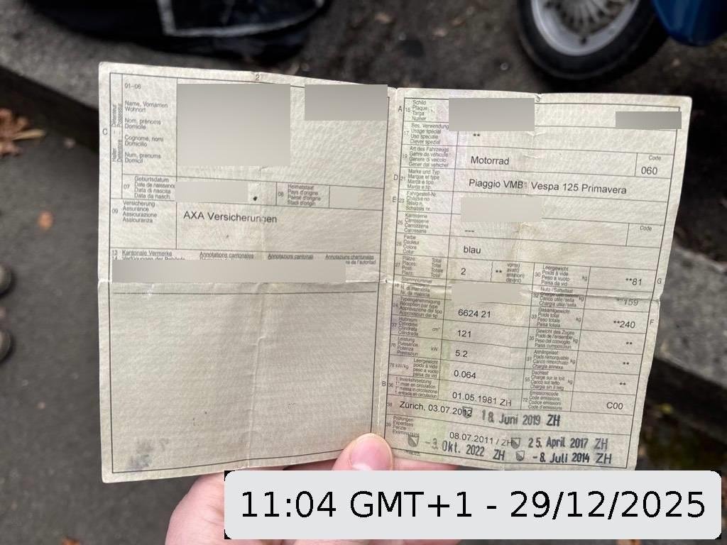 - More InformationHergangsschilderung: Vespa wurde nach einem Diebstahl in einem See wieder aufgefundenDie (vom Fahrzeugexperten) ermittelten Reparaturkosten beziehen sich auf das versicherte Ereignis. Allfällige zusätzliche, nicht versicherte Schäden/Vorschäden, sind in den Reparaturkosten nicht enthalten. Die deklarierten Ausstattungsmerkmale können von der effektiven Ausstattung abweichen.Fahrzeug nach Diebstahl wieder aufgefundenMit Bezug auf unsere allgemeinen Geschäftsbedingungen (AGB) für die Restwertbörse wird nochmals ausdrücklich darauf hingewiesen, dass keine Gewährleistung für mechanische uns sonstige Schäden und Mängel besteht. Die effektive Kilometerleistung kann von der deklarierten Kilometerleistung abweichen.