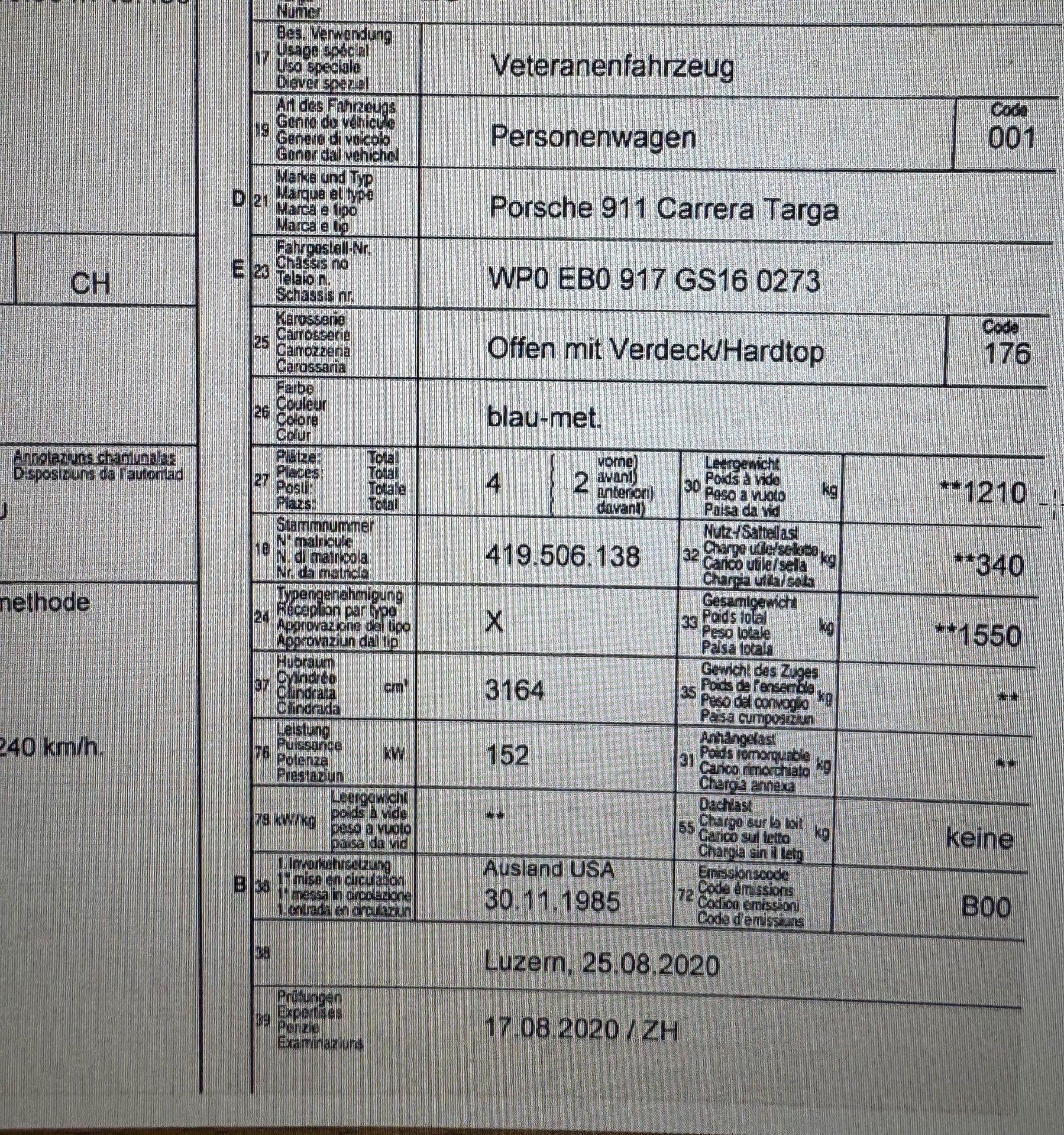 1985 PORSCHE 911 Carrera Targa