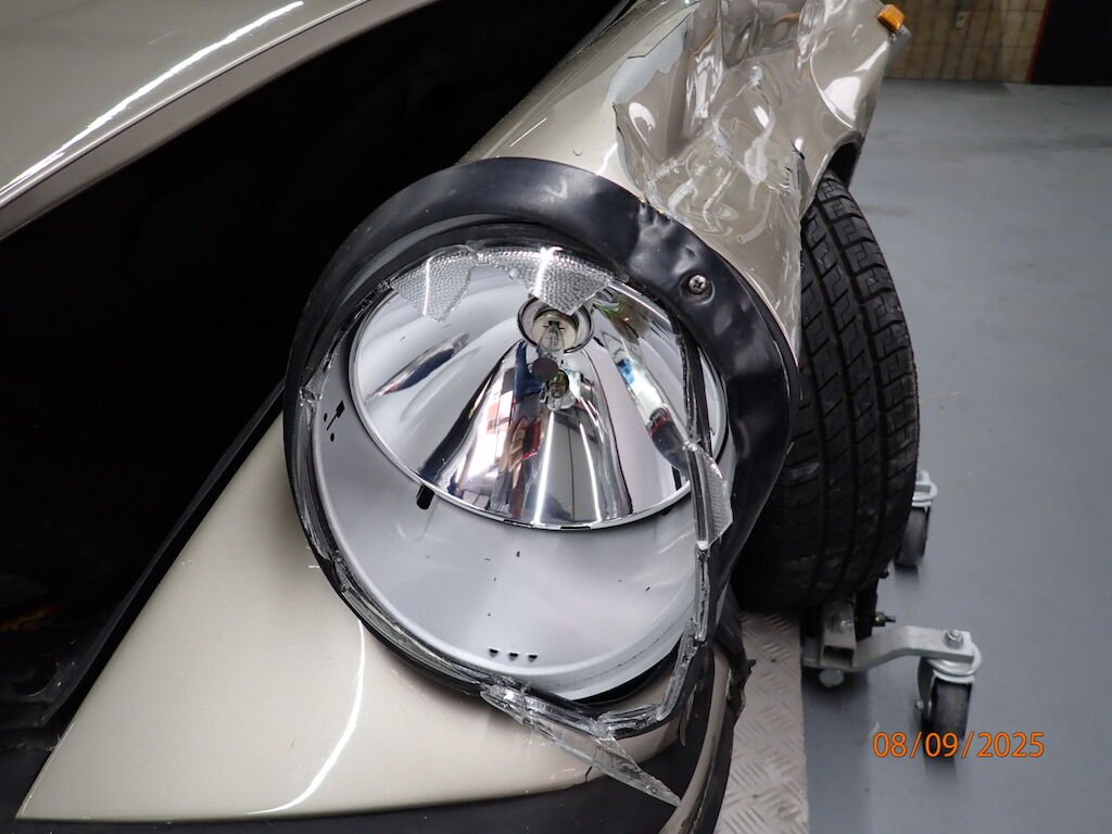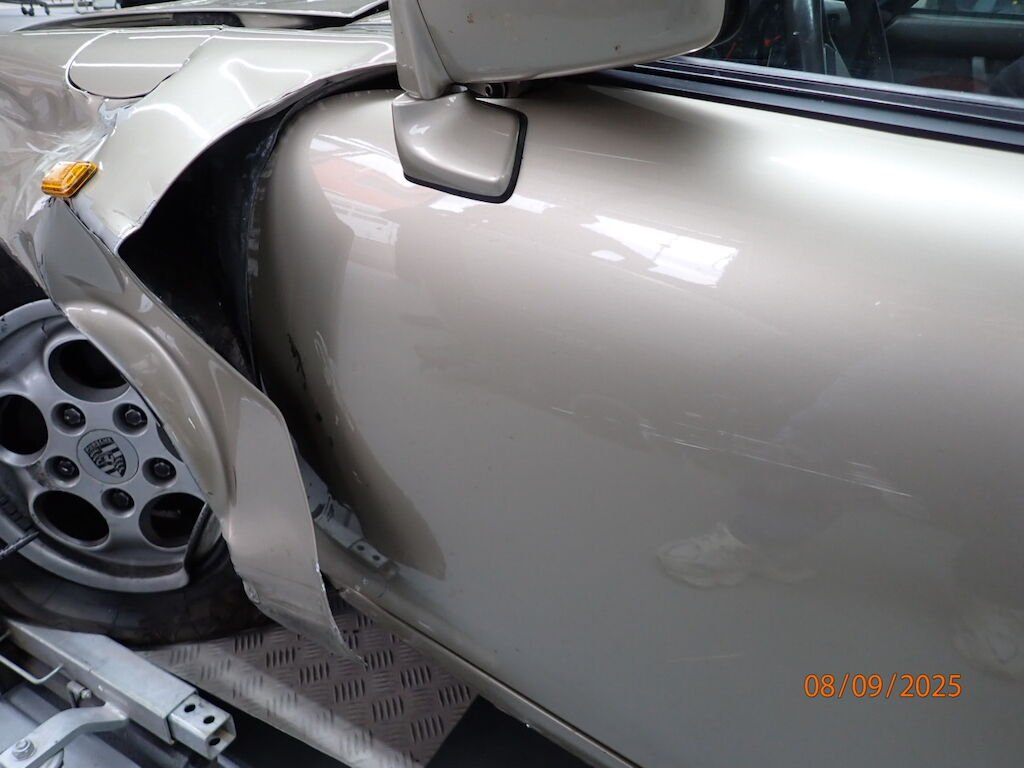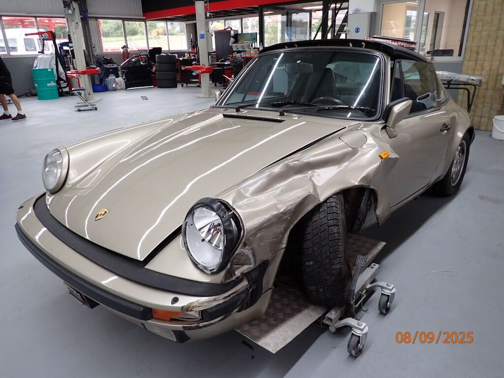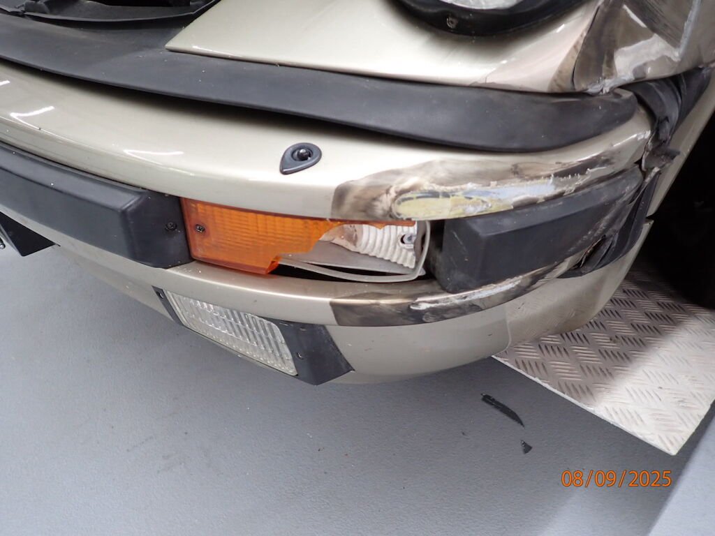 Pare-chocs avant, phare, aile avant, porte, aile arrière, bas de caisse, auvent plié, caisse vrillée, hard-top ne rentre plus dans son logement, plancher avant, joue d'aile pliée, montant A plié, passage de roue intérieur plié, roue avant, amortisseur, roulement, moyeu, trapèze cassé, direction