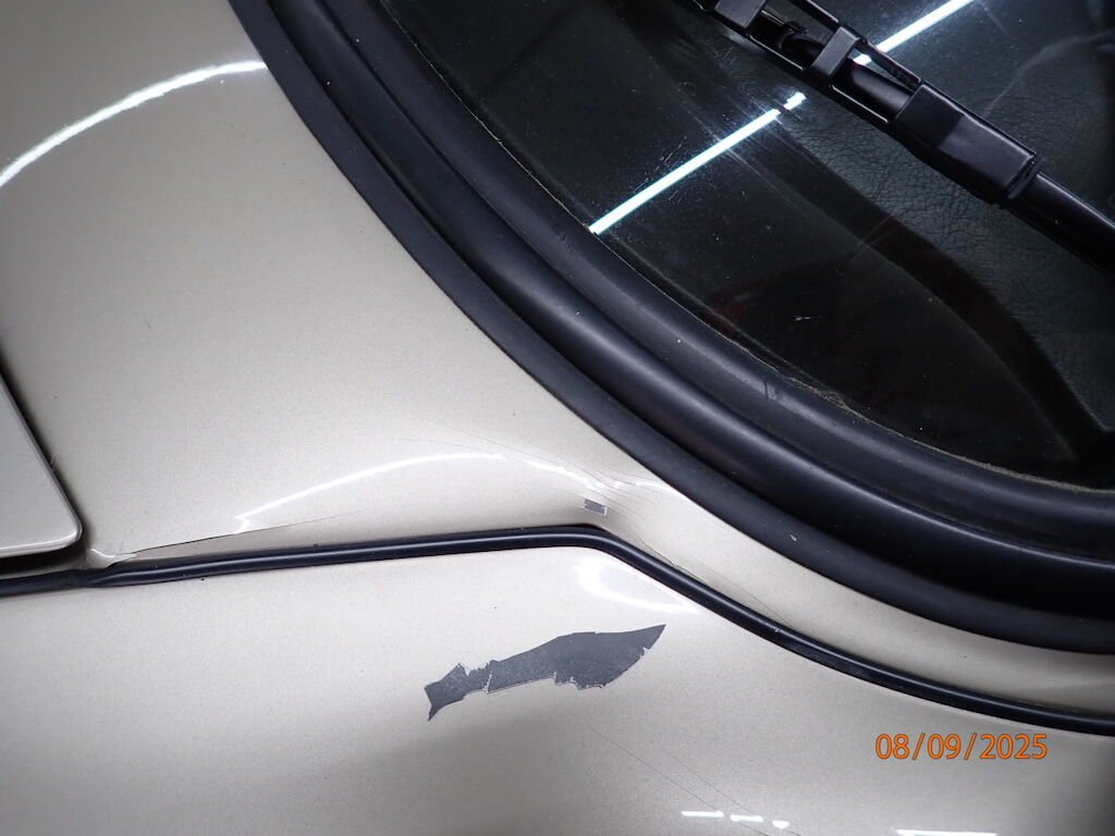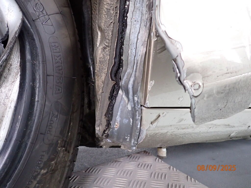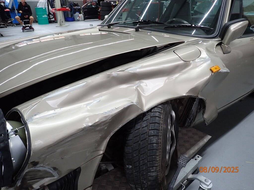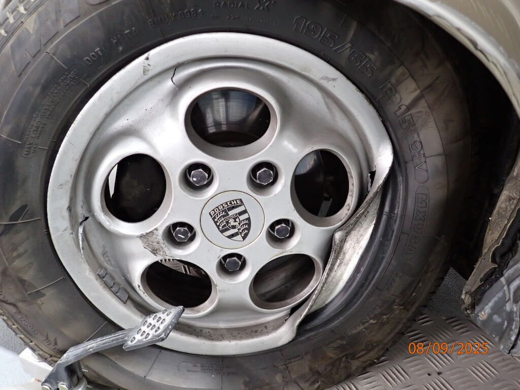Pare-chocs avant, phare, aile avant, porte, aile arrière, bas de caisse, auvent plié, caisse vrillée, hard-top ne rentre plus dans son logement, plancher avant, joue d'aile pliée, montant A plié, passage de roue intérieur plié, roue avant, amortisseur, roulement, moyeu, trapèze cassé, direction