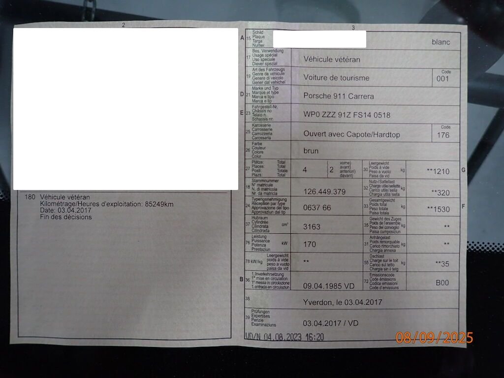 1985 Porsche 911 (Typ 911 / 930)(1983->1989)
