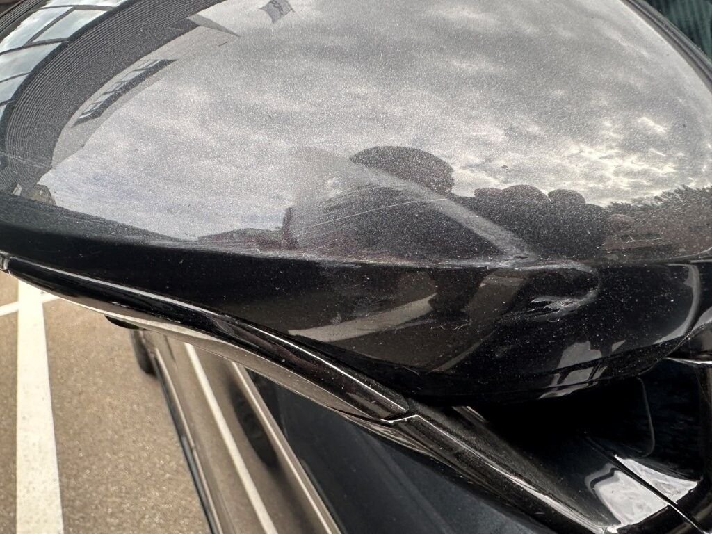 Der Spiegel vorne rechts ist beschädigt.