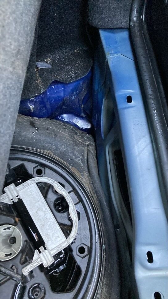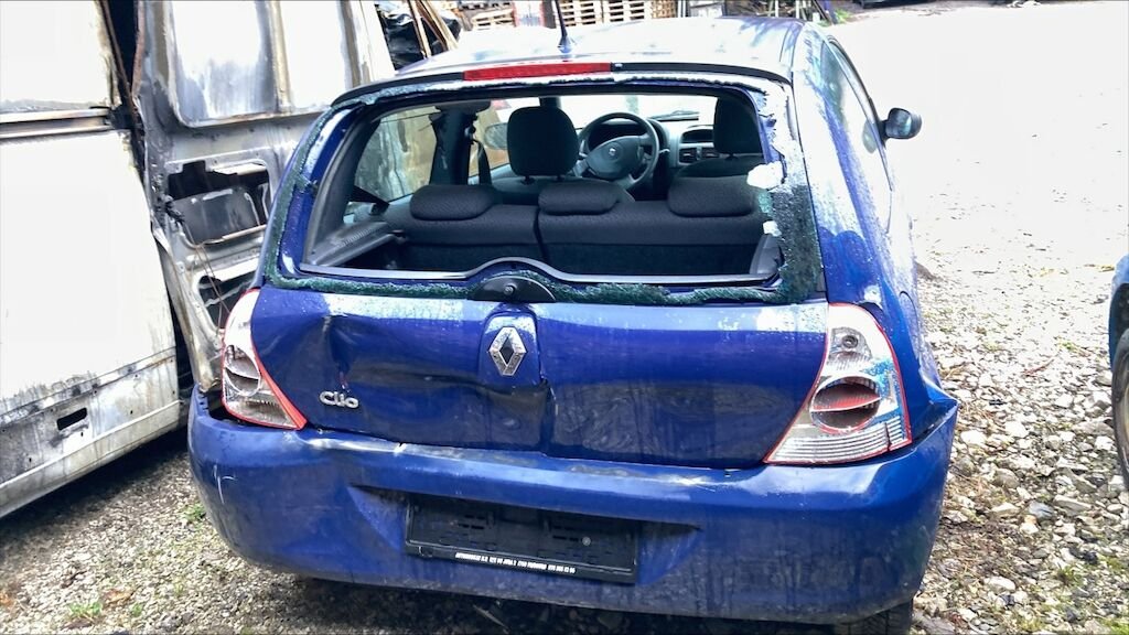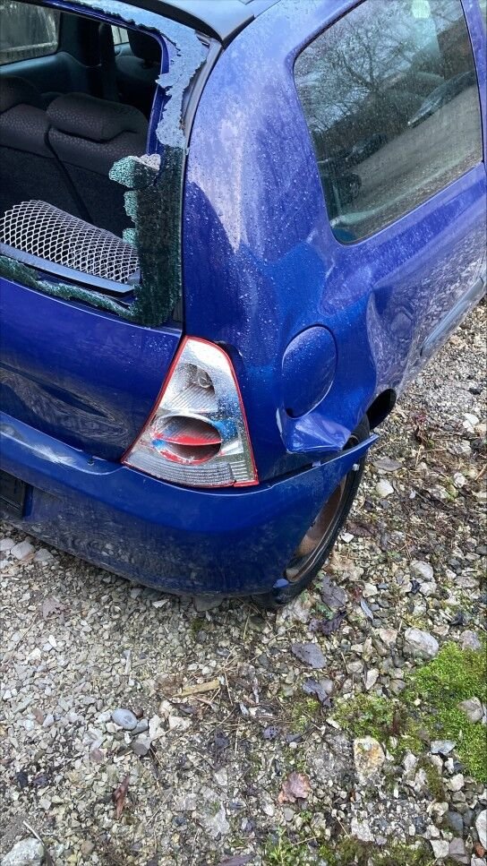 Zone arrière: coffre, vitre, jupe, fonds du coffre, par choc, deux phare, aile droite enfoncés, refoulés.