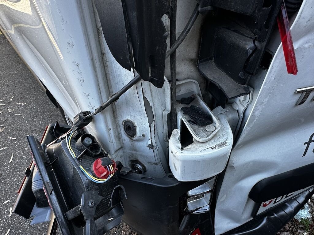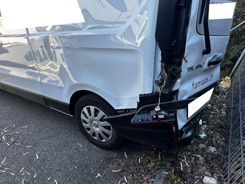 Dabei wurde die Stossstange, die Hecktüren, die D-Säule, die Seitenwand, sowie diverse Anabuteile deformiert sowie beschädigt.