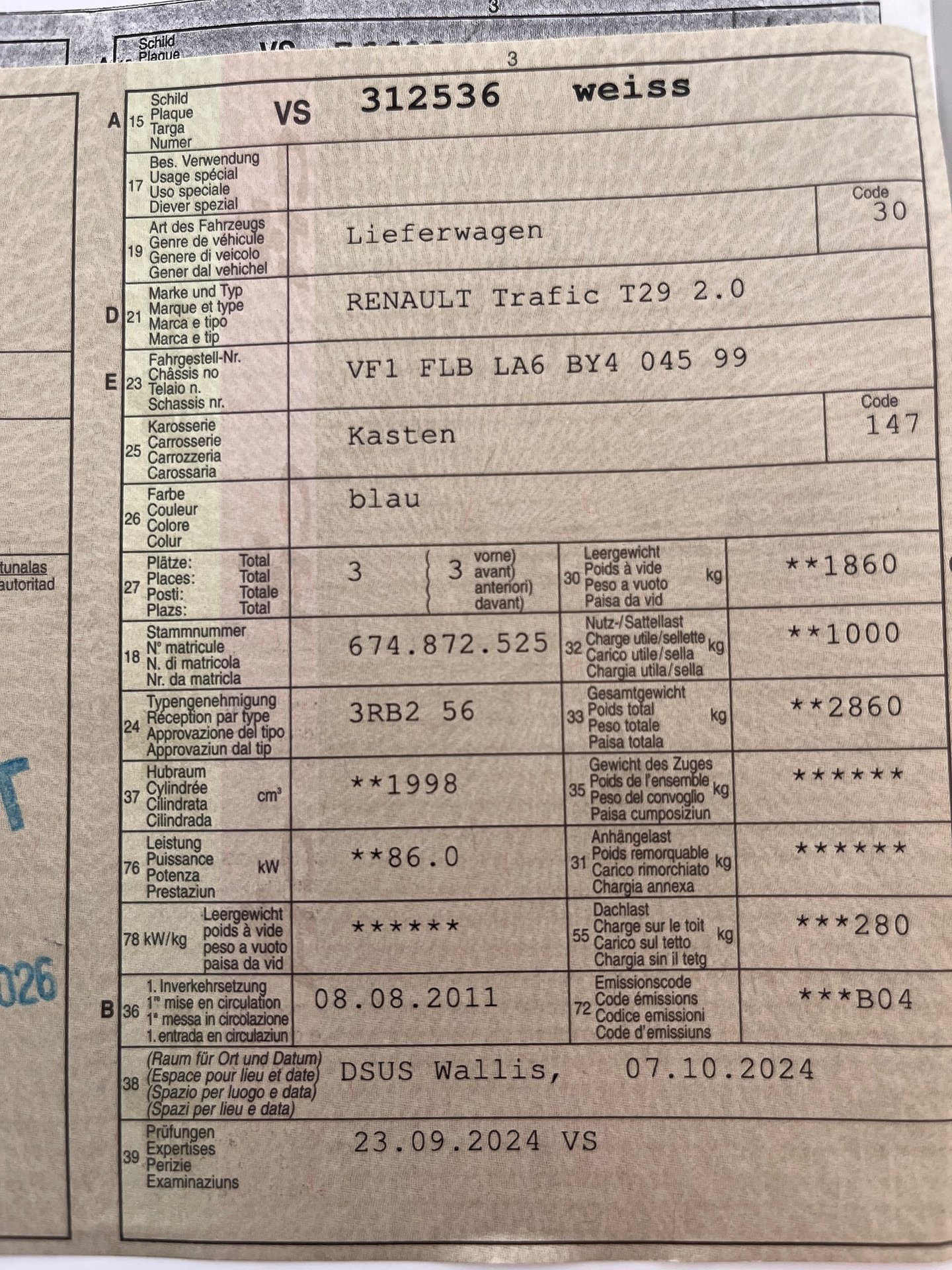 2011 RENAULT Trafic T29 2.0