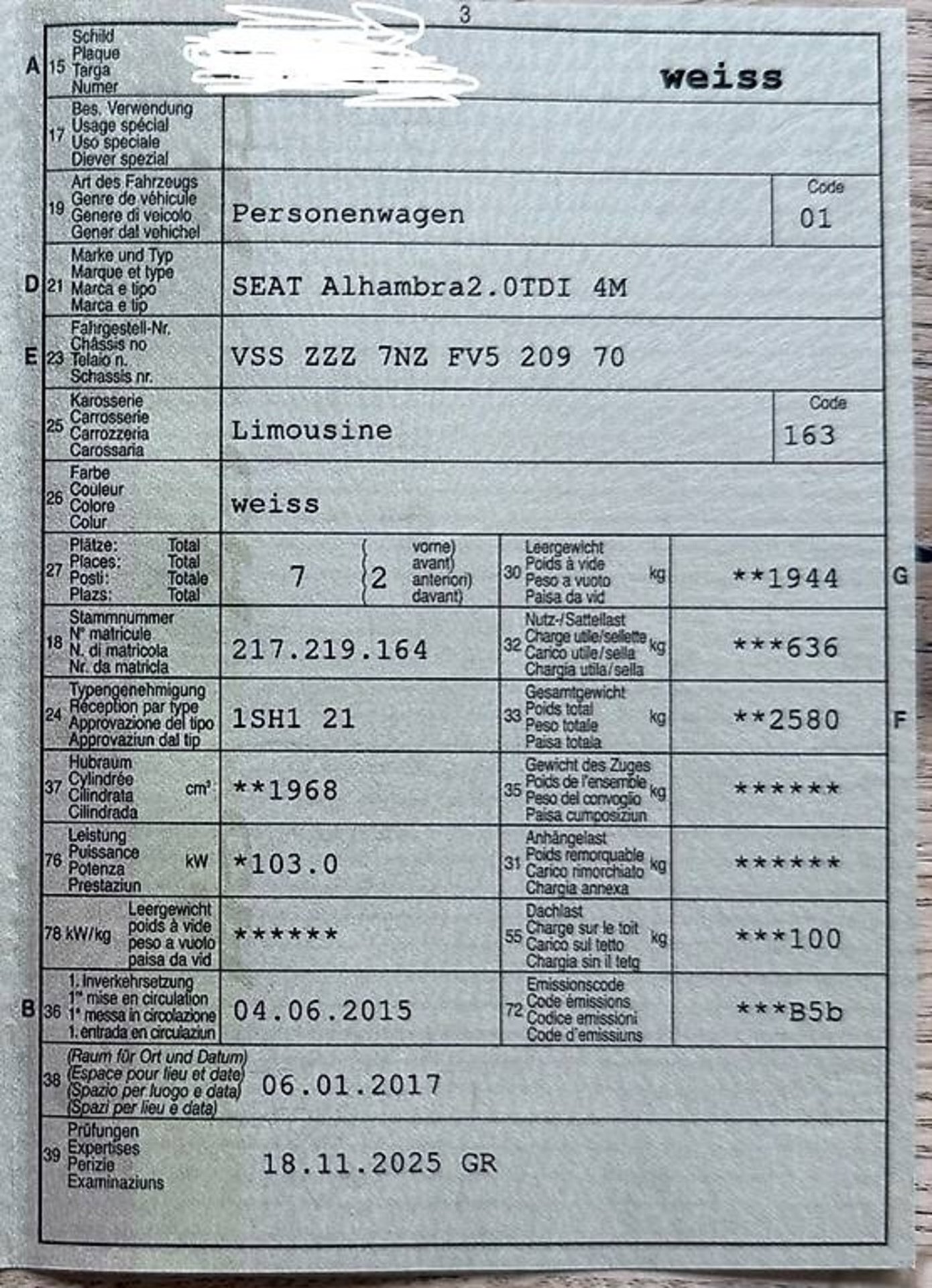 2015 SEAT Alhambra2.0TDI 4M
