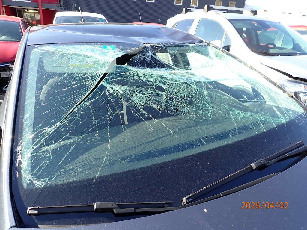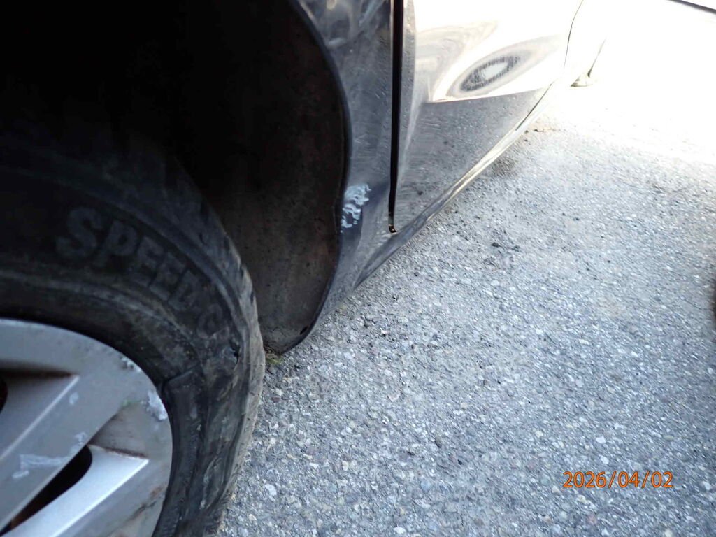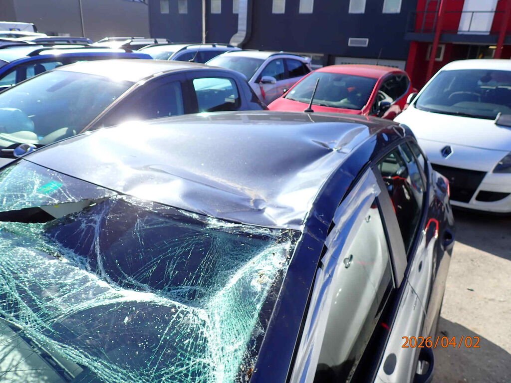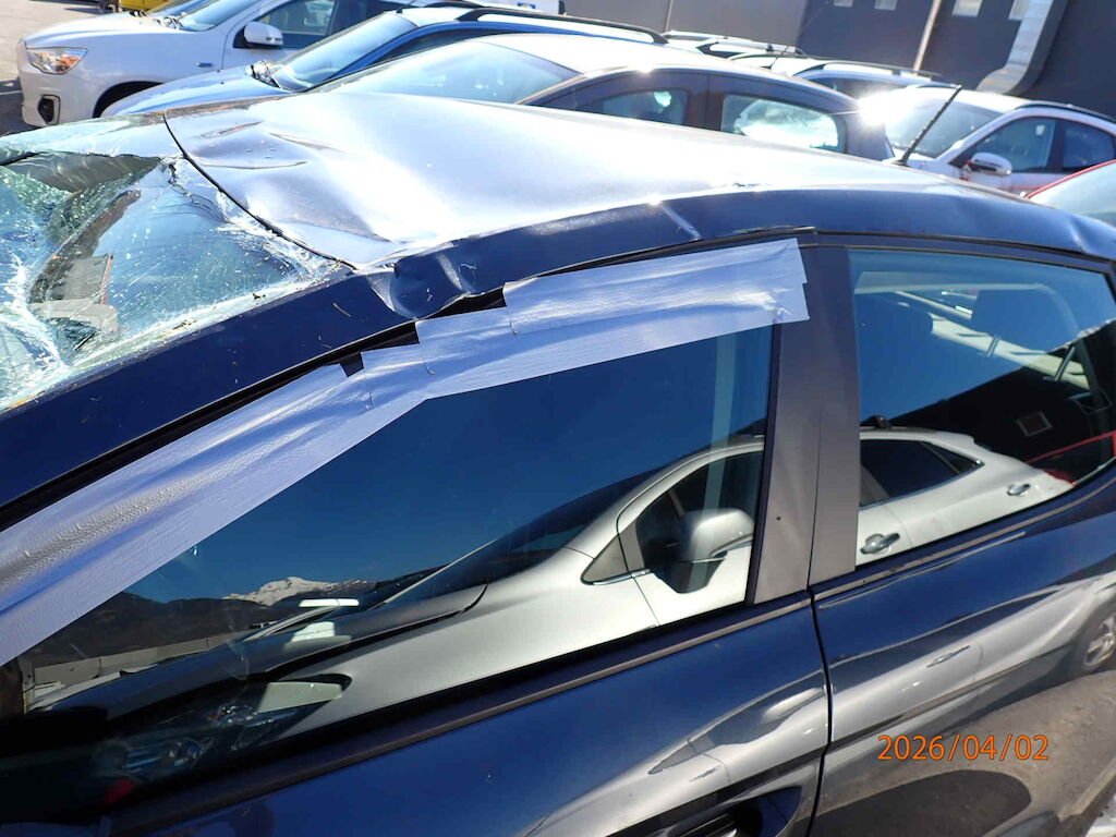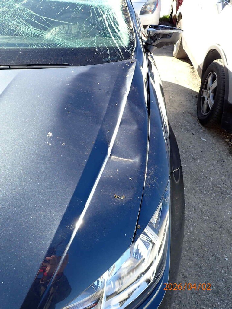 Toit écrasé. Capot à remplacer